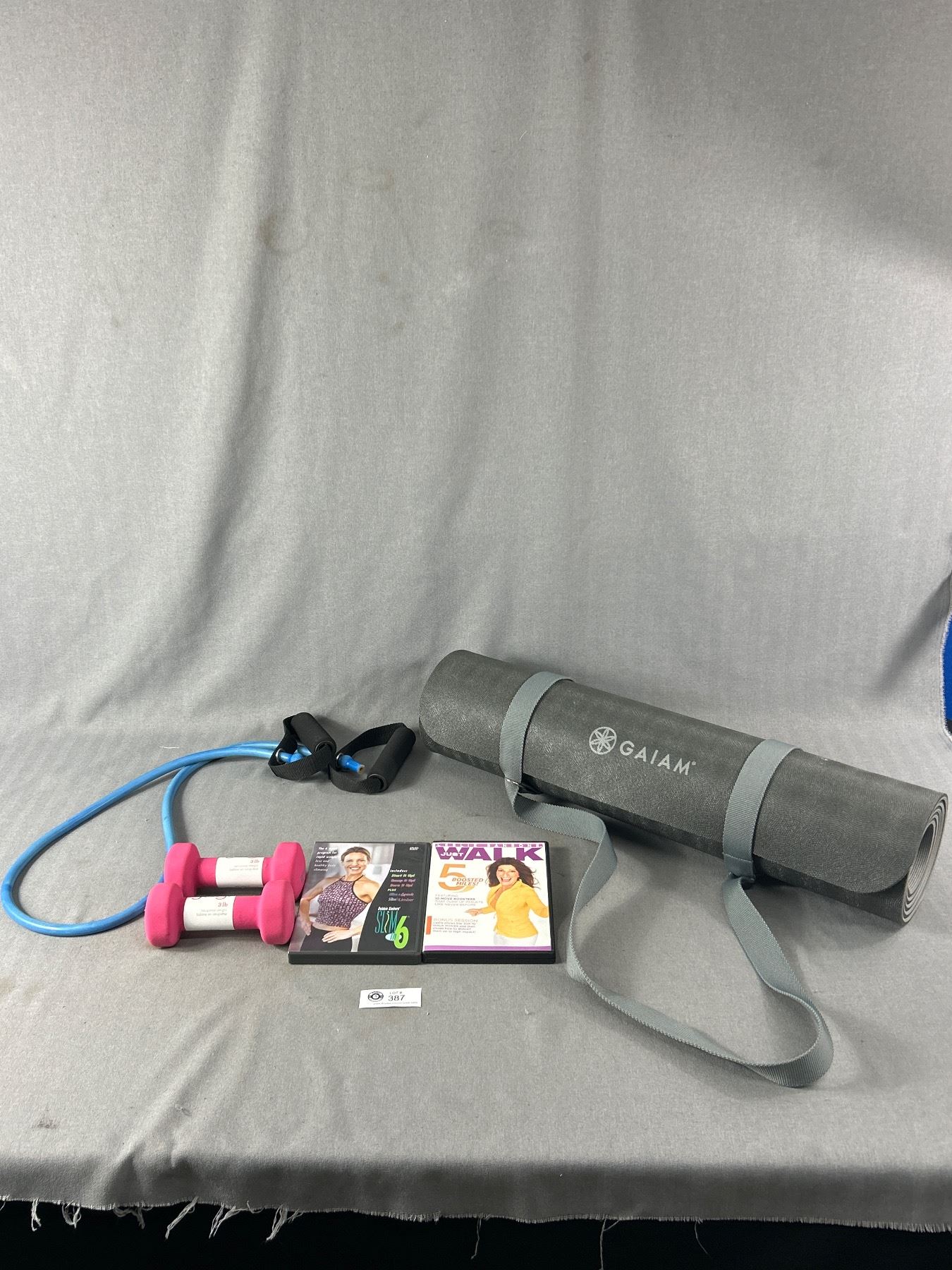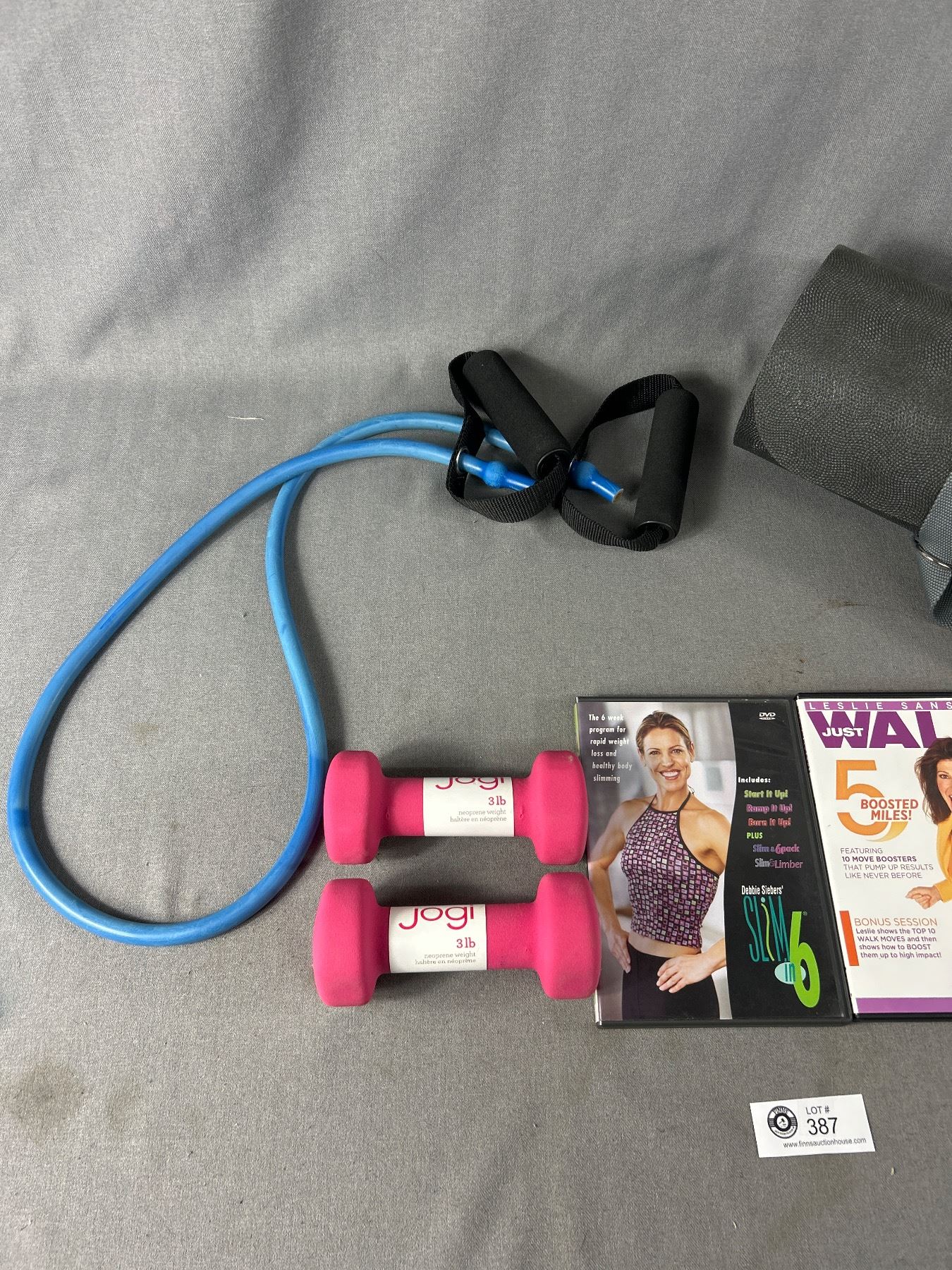Small Exercise Lot - Matt, Weights, DVD's & Skipping Rope