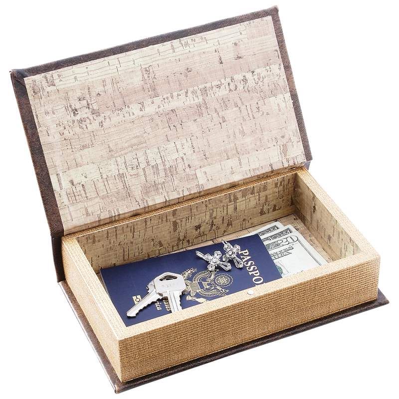 Small Faux Book Safe **|**|** Features intricately designed exterior, gold-tone imitation book pages, 4" x 7" x 1-5/8" hidden inner compartment, and magnetic closure. Exterior measures 5-1/8" x 8-3/8" x 2".