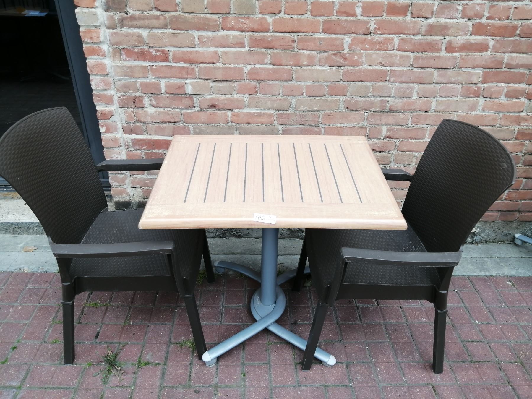 Small Folding Patio Table w/ 2 x Wicker-Like Plastic Chairs