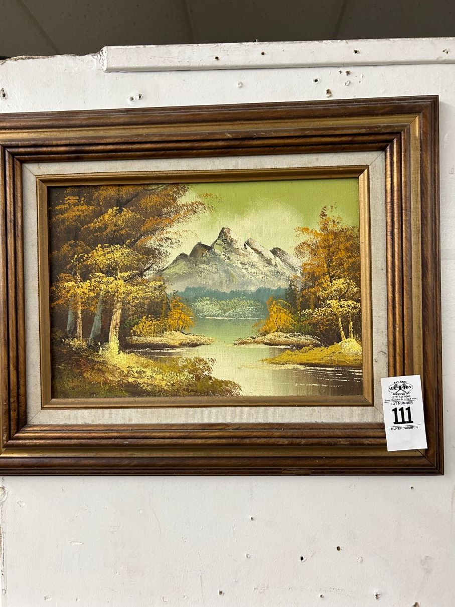 Small Framed Oil On Canvas Mountain Lake Scene - 12" X 18"
