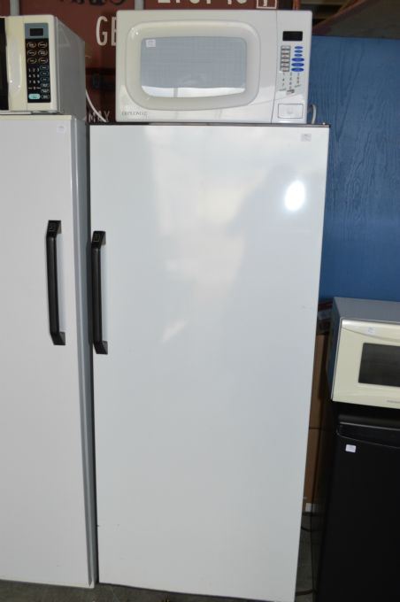 Small General Electric fridge and a Diplomat microwave oven