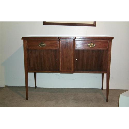 <tr><td>Title:Small George III tambour sideboard, circa 1785</td></tr>
