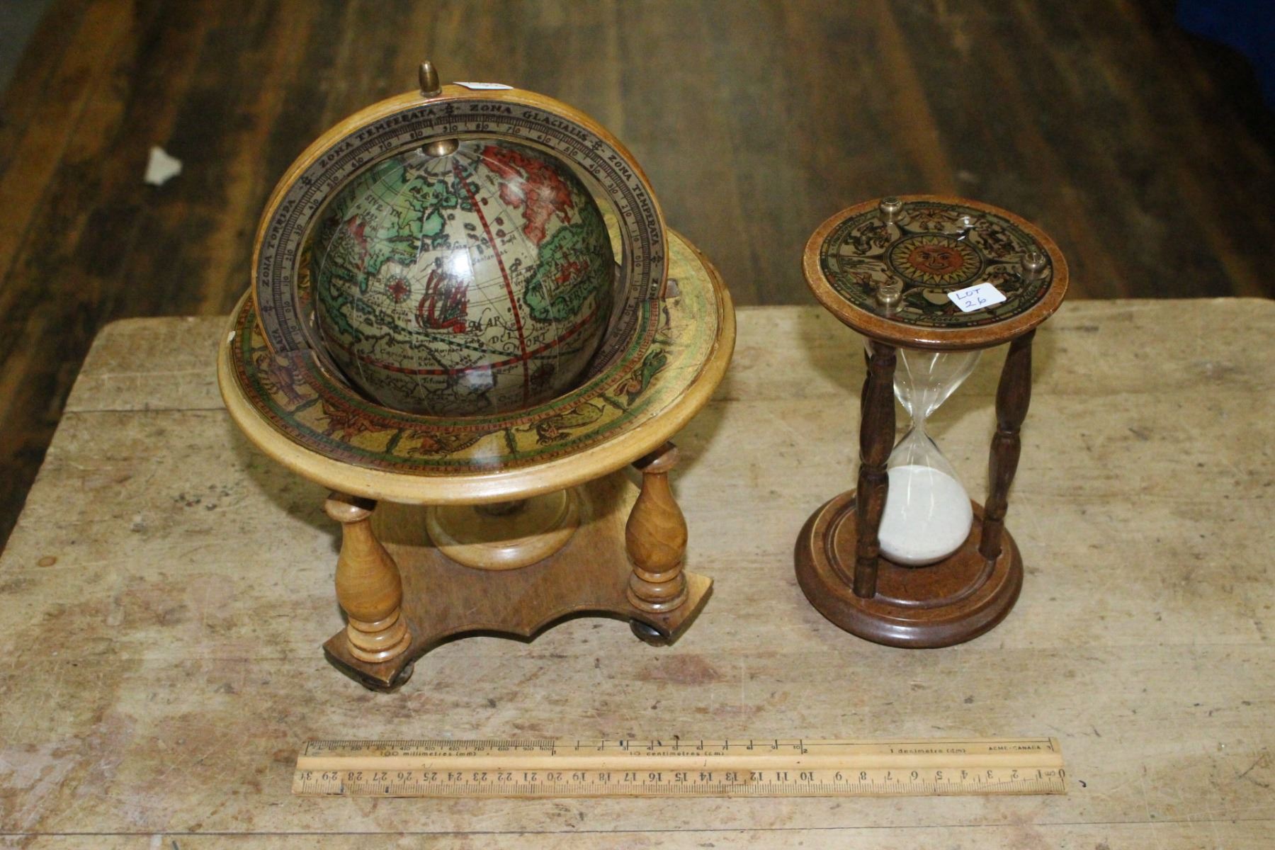 Small Globe in a Stand and a Sand Timer
