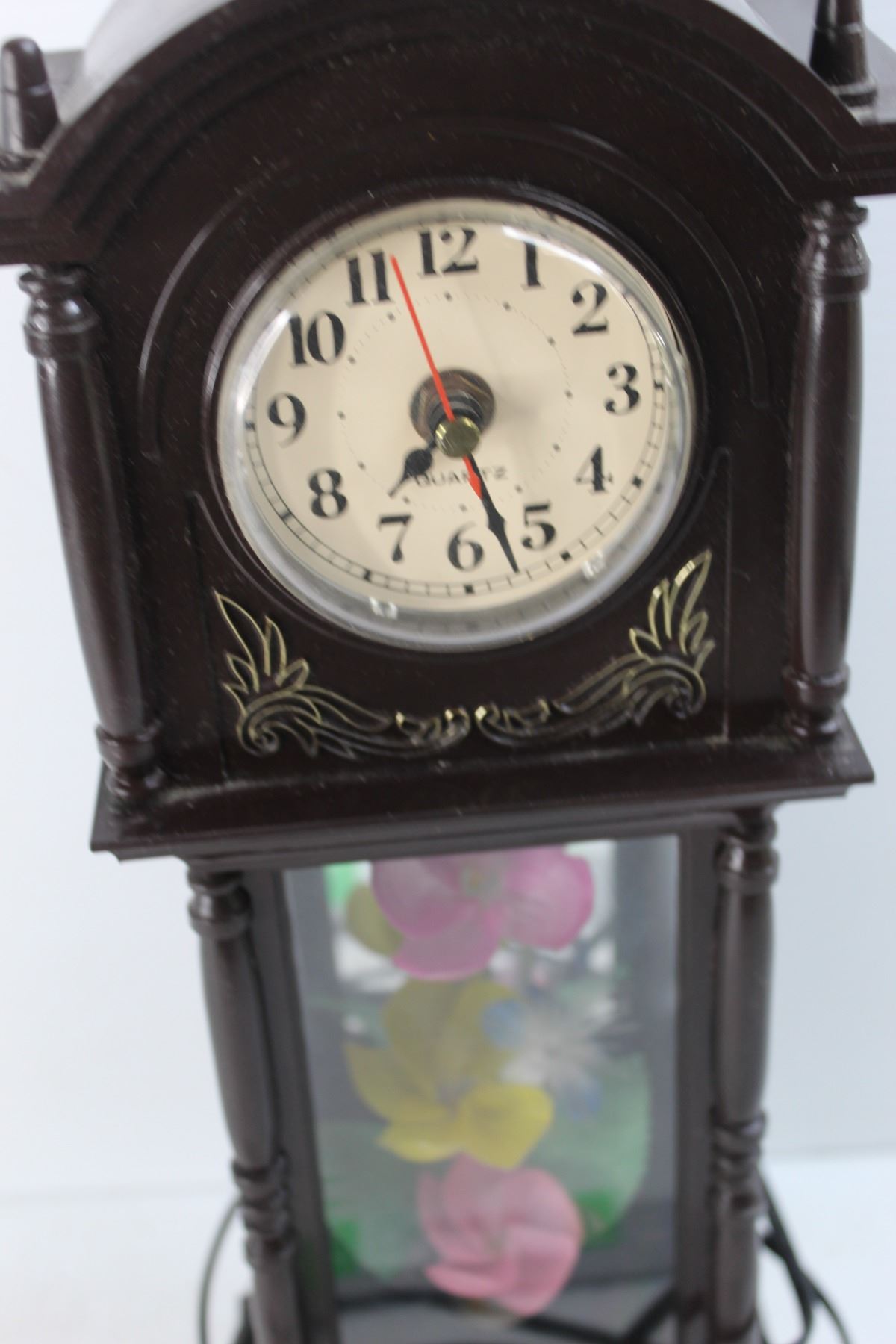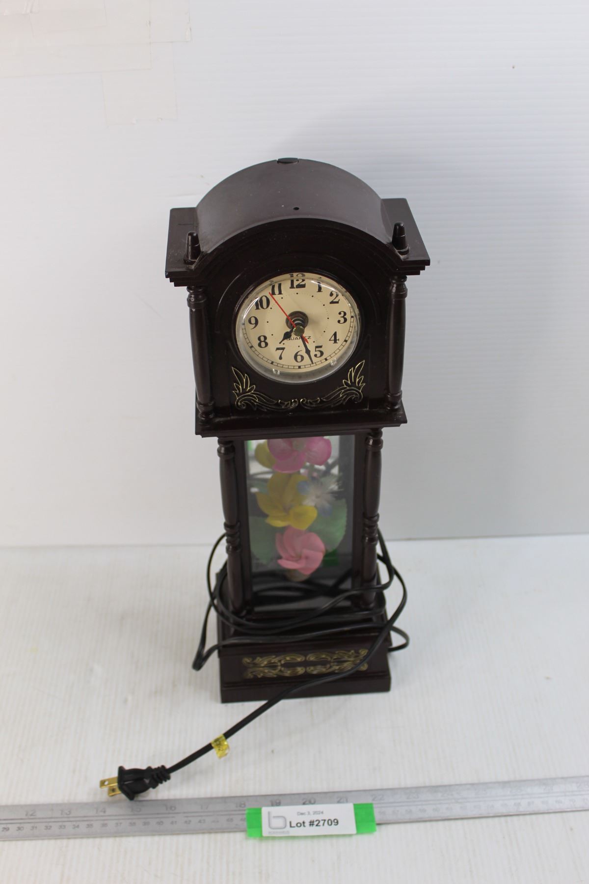 Small Grandfather Clock Decoration, 16.5'' Tall w/ Small Artificial Flower Inside- Powers On