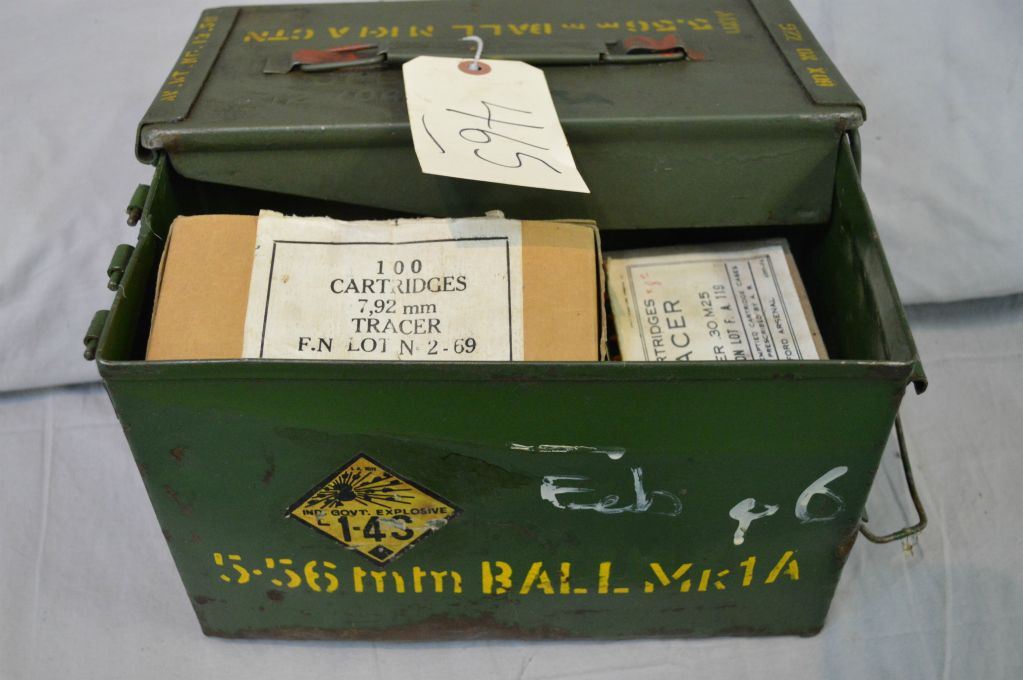 Small Green Miltiary Metal Ammo Box : Approx 200 rnds Boxes 7.92 MM Tracer Ammo - 2 Boxes .303 Tracer Ammo - 18 Rnds .30 Cal Tracer Ammo