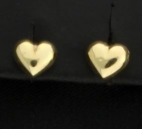 In 14K yellow gold, the hearts are 1/4 inch in diameter. .3g