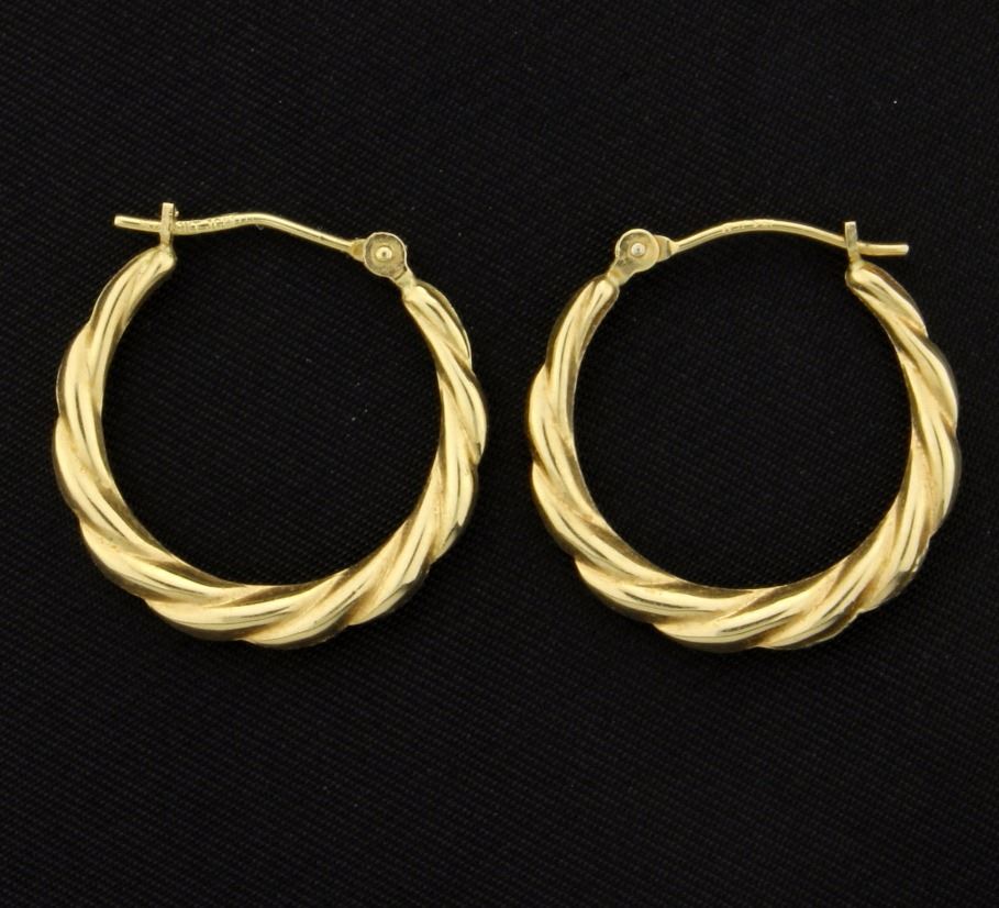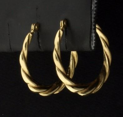 14K yellow gold, they are 7/8 inch long. 1.0g