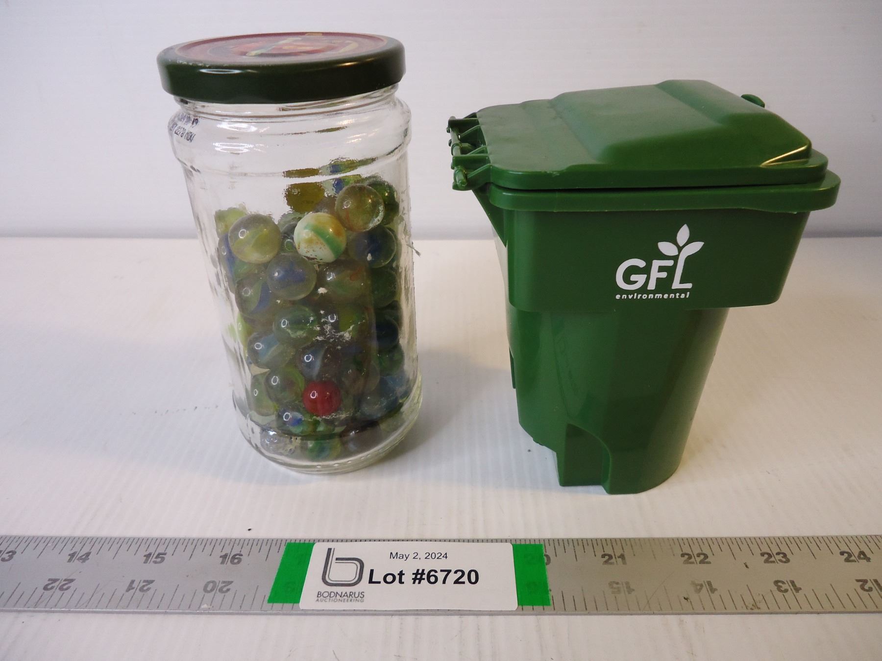 Small Jar of Marbles and Mini Waste Bin