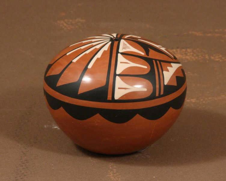 By LLT, black and white on red clay, 2-1/4" x 2-3/4" dia., -568084-
