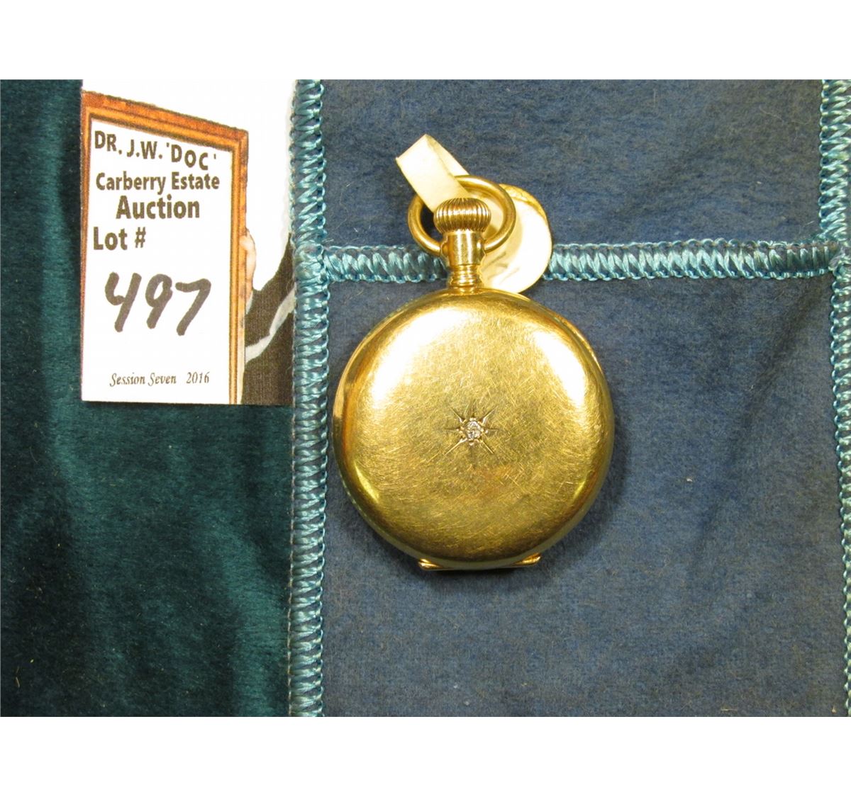 Small Ladies size Hunting Case Pocket Watch "American Waltham Watch Co.", Diamond inset in case. No