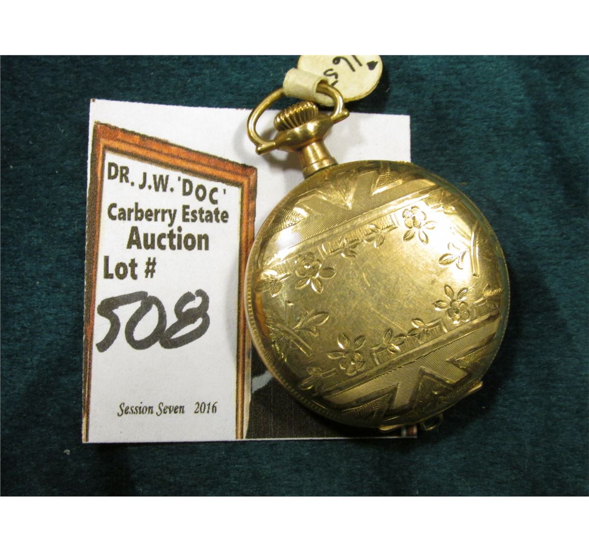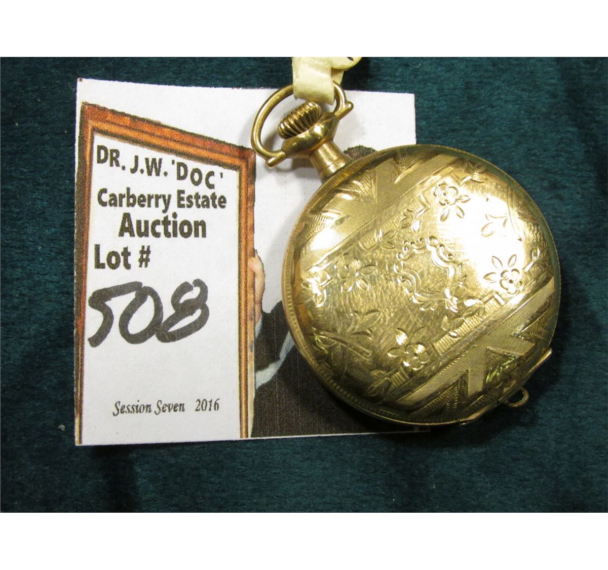 Small Ladies size Hunting Case Pocket Watch "Crown Watch Co.", scroll engraved case. Runs for only a