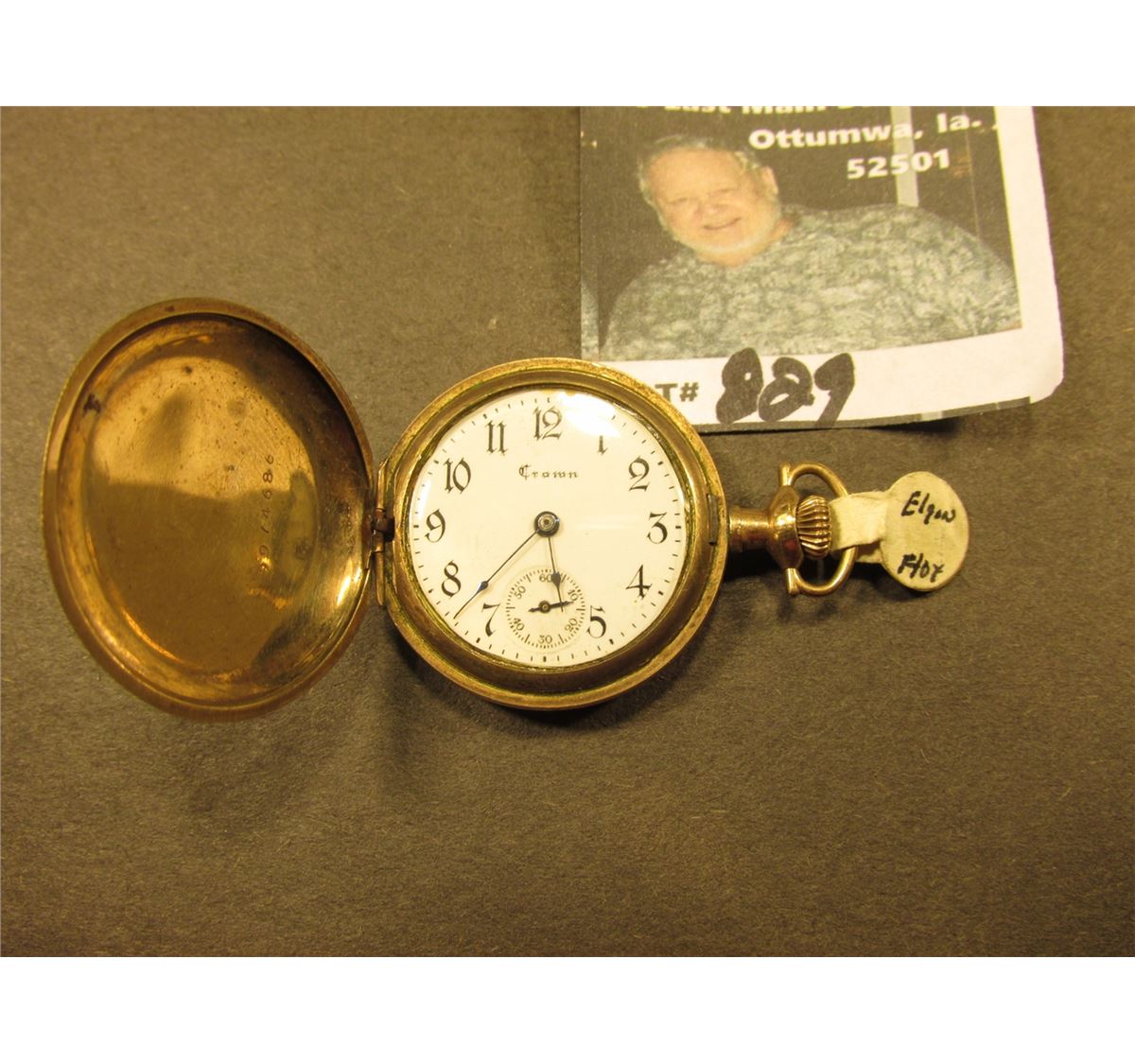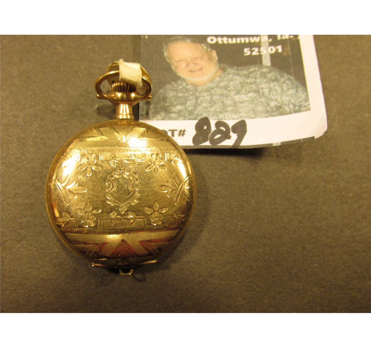 Small Ladies size Hunting Case Pocket Watch "Crown Watch Co.", scroll engraved case. Runs for only a