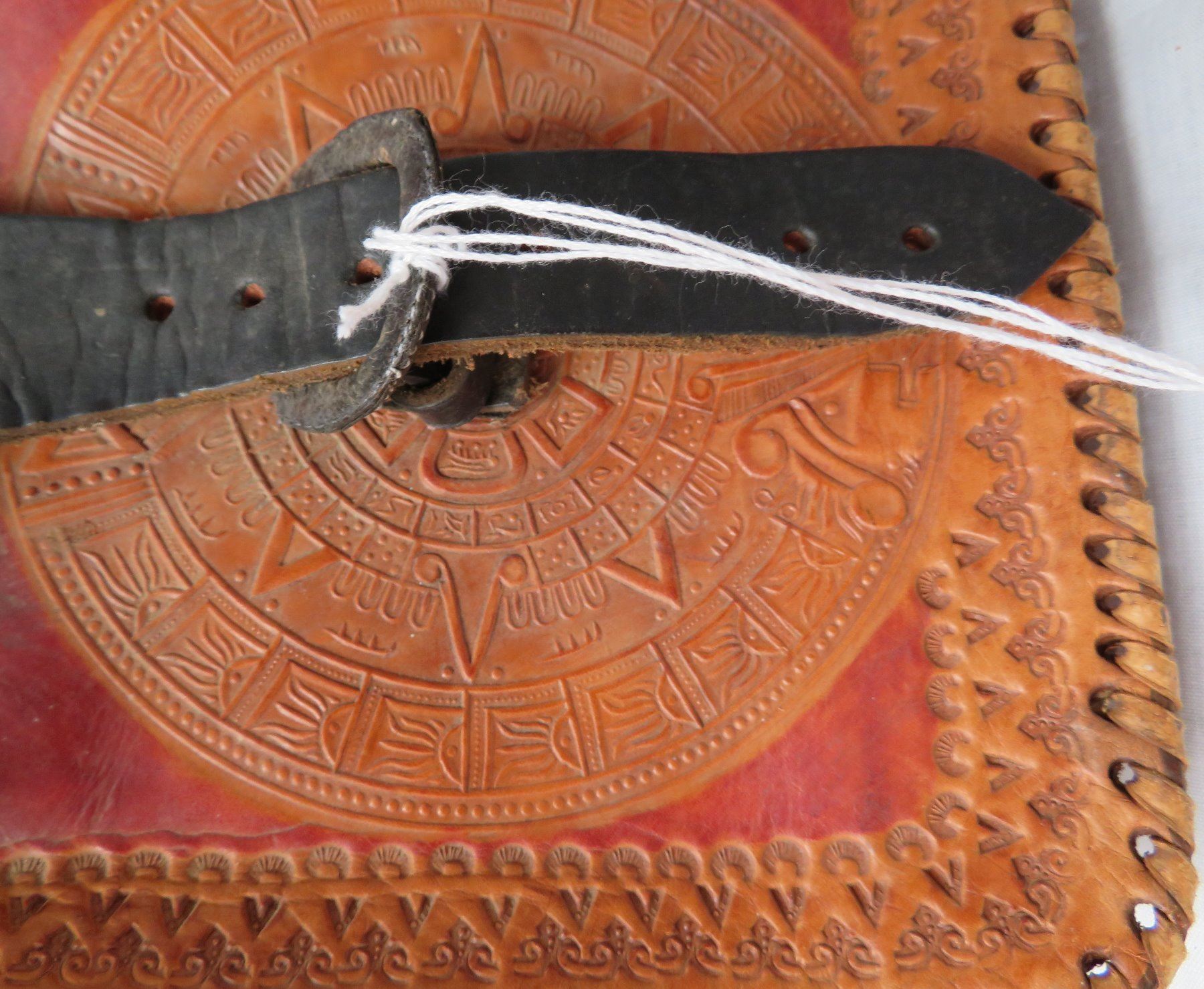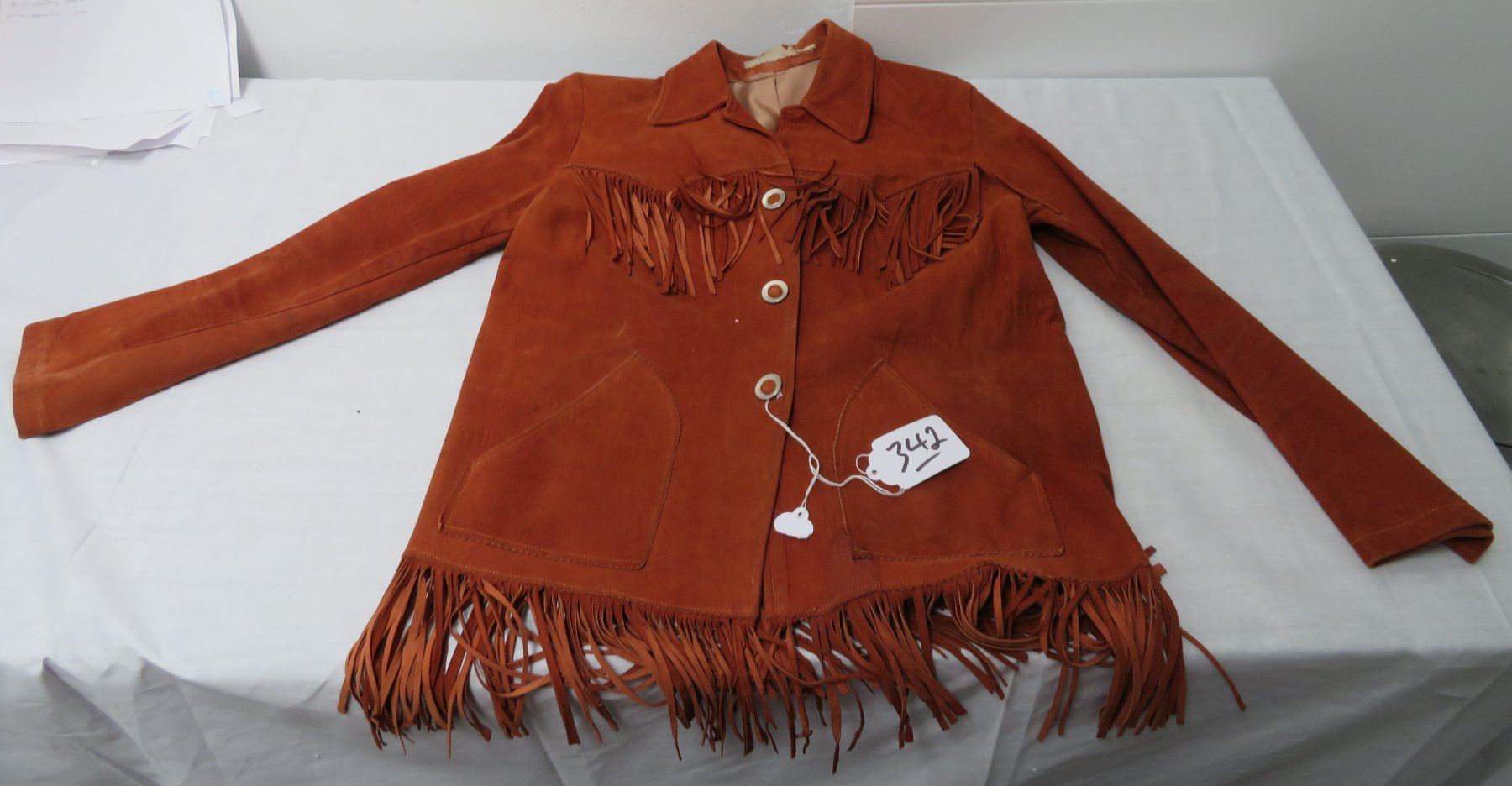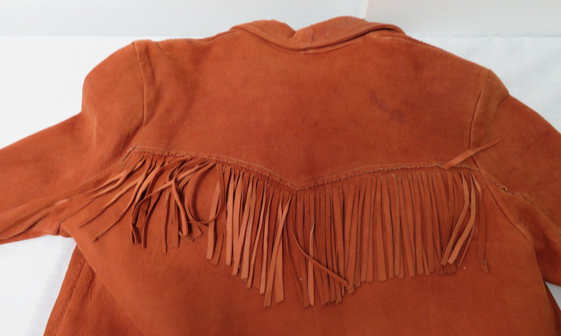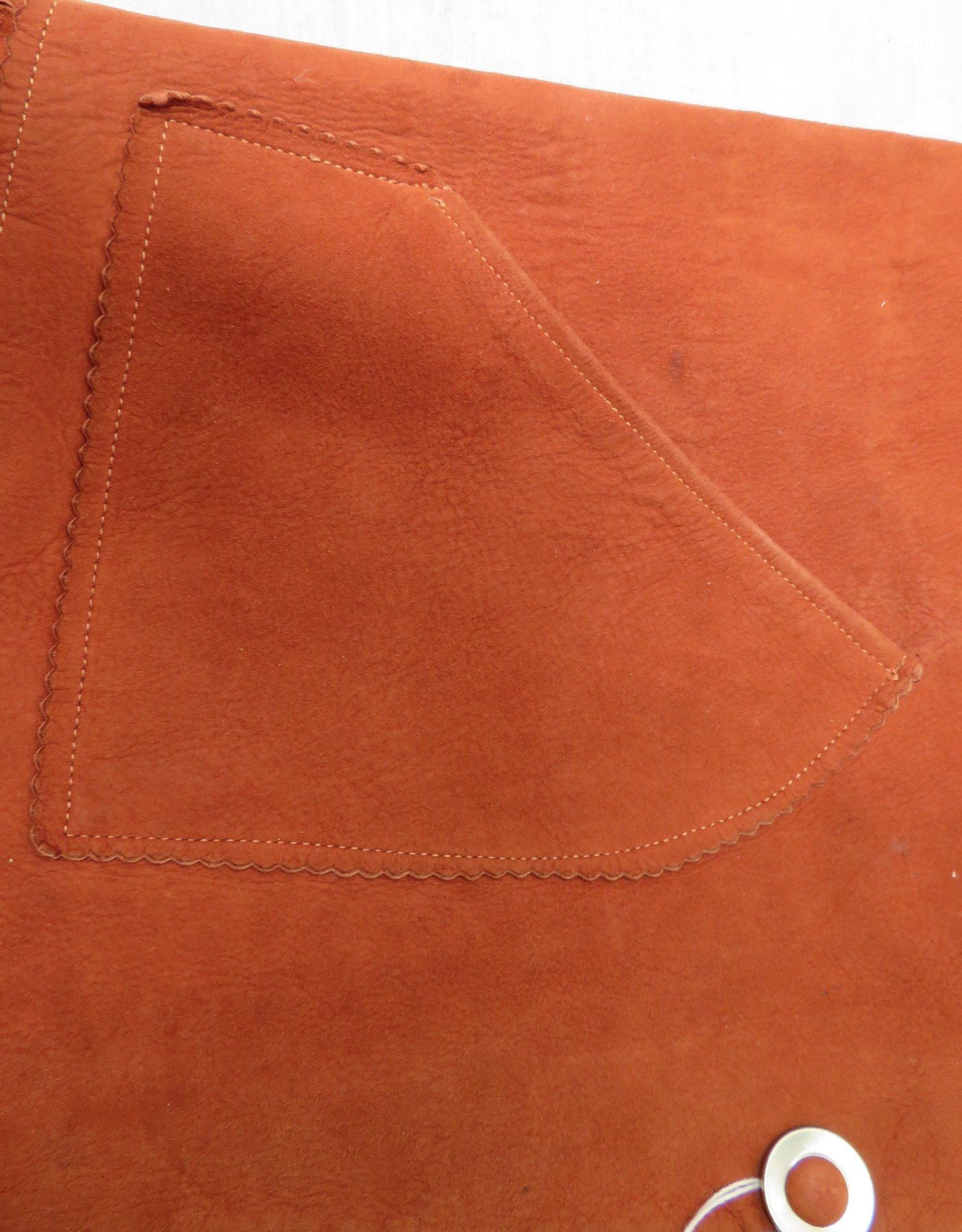 Small Leather Jacket + Tooled Mexican Saddlebags, c. 1950s. Made of leather, the jacket measures 18" x 24 and the saddlebags measure 10" x 9". Mexico, USA, Danz Western Wear (?). Condition: Good, see images. Shipping: $22.50 w/insurance and signature.