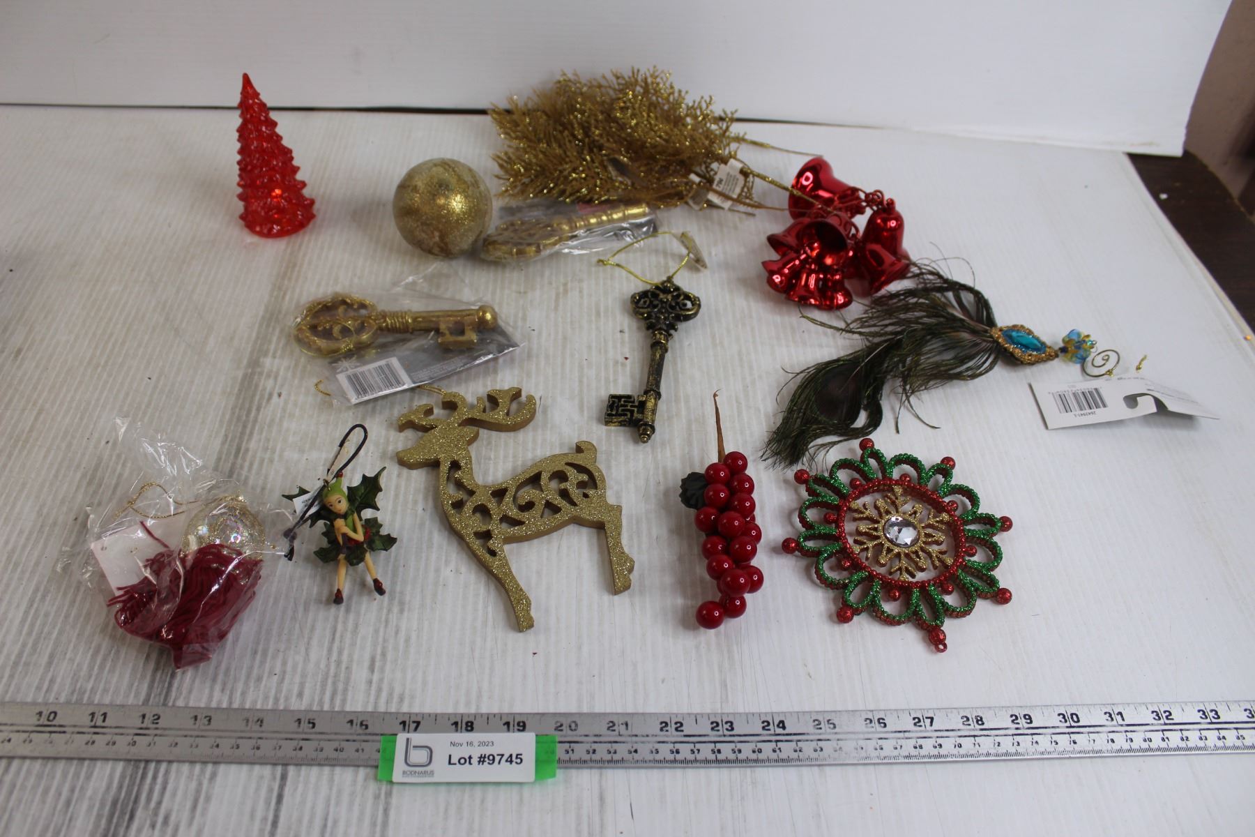 Small Light-Up Christmas Tree, (3) Key Decorations, Misc.
