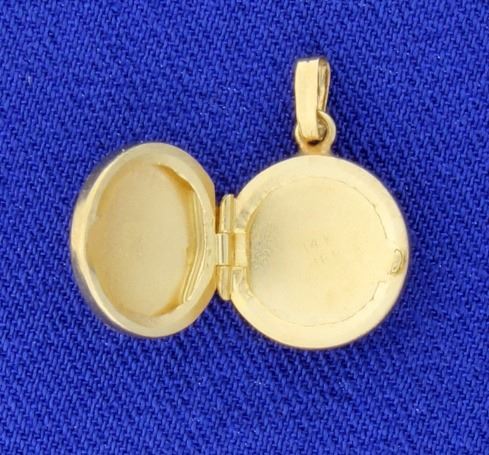 In 14K yellow gold, this 1/2 inch long locket has a diamond cut leaf pattern. 1.0g