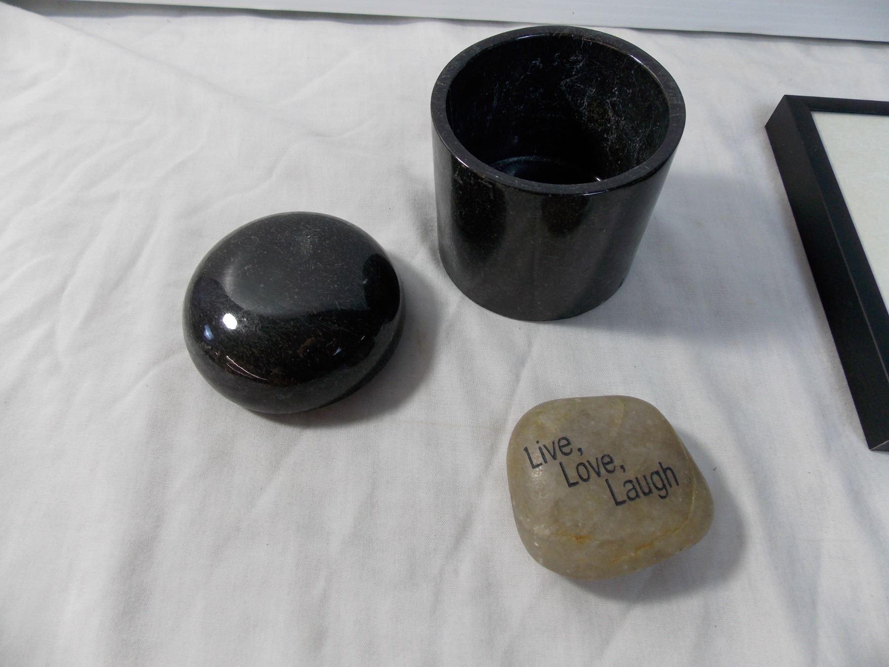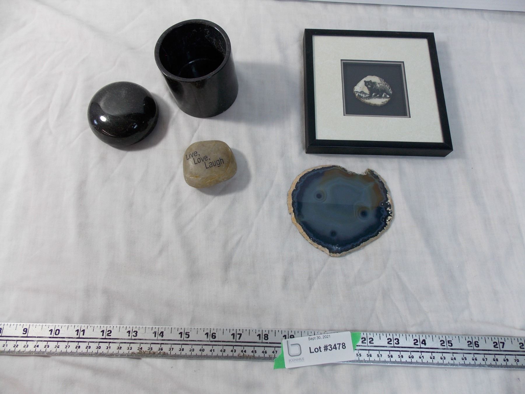 Small Marble storage container, rock, geode, stone bear art piece
