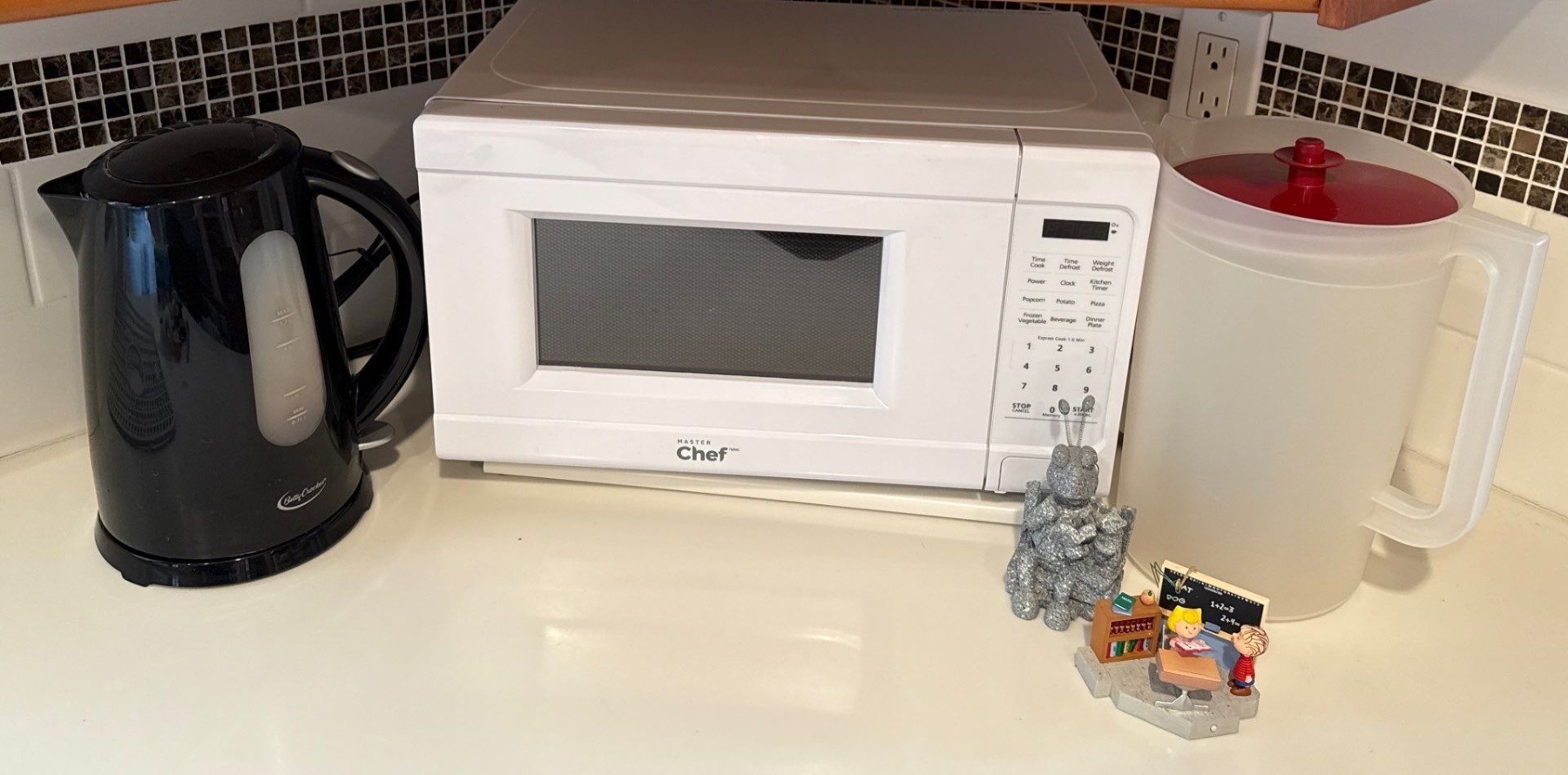 Small Master Chef Microwave Model EM720CNF-PM, Betty Crocker Kettle & More!