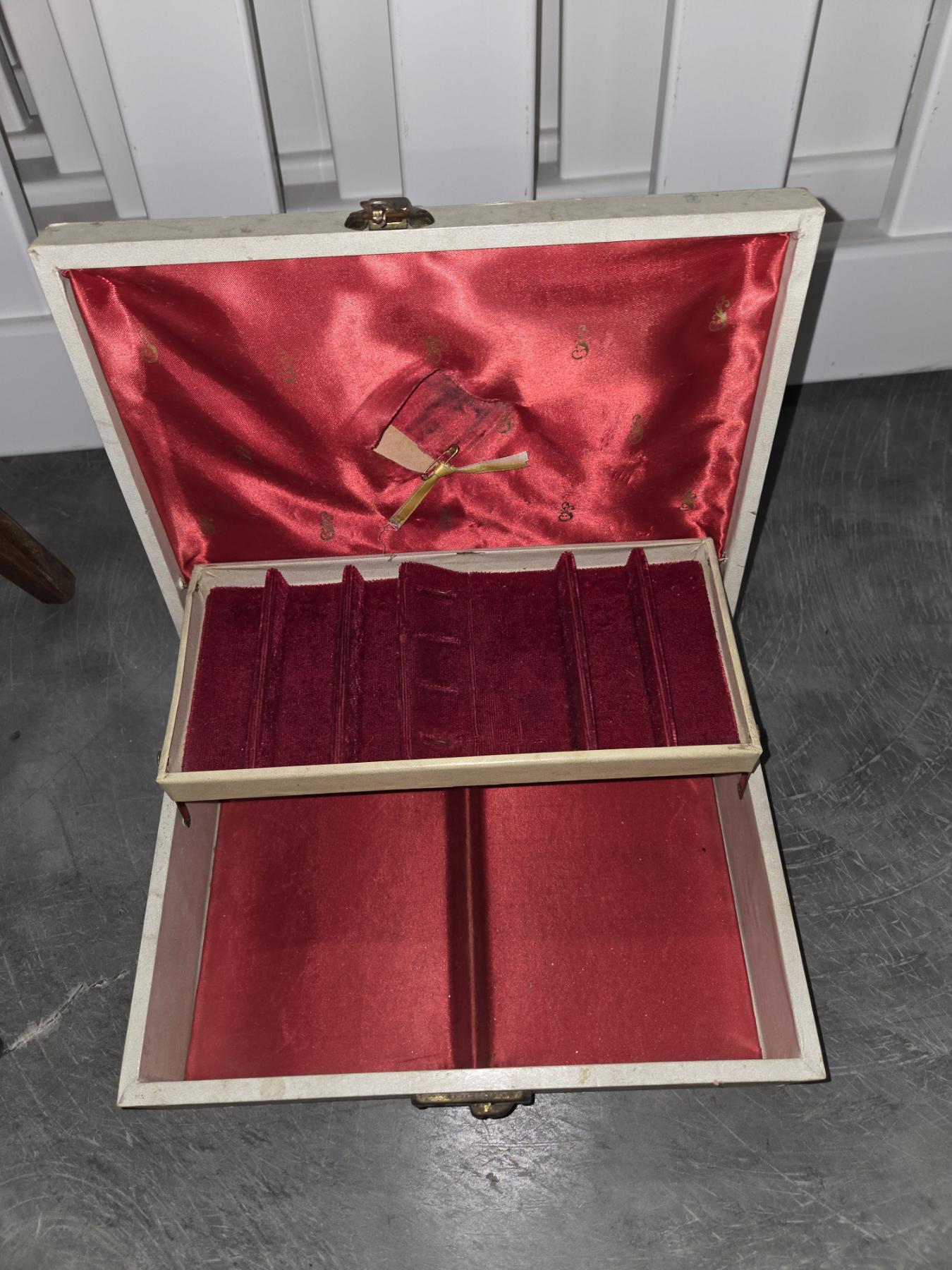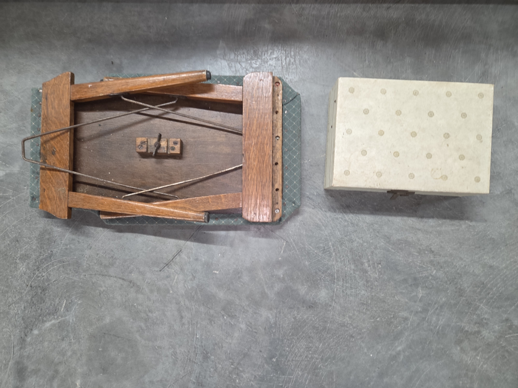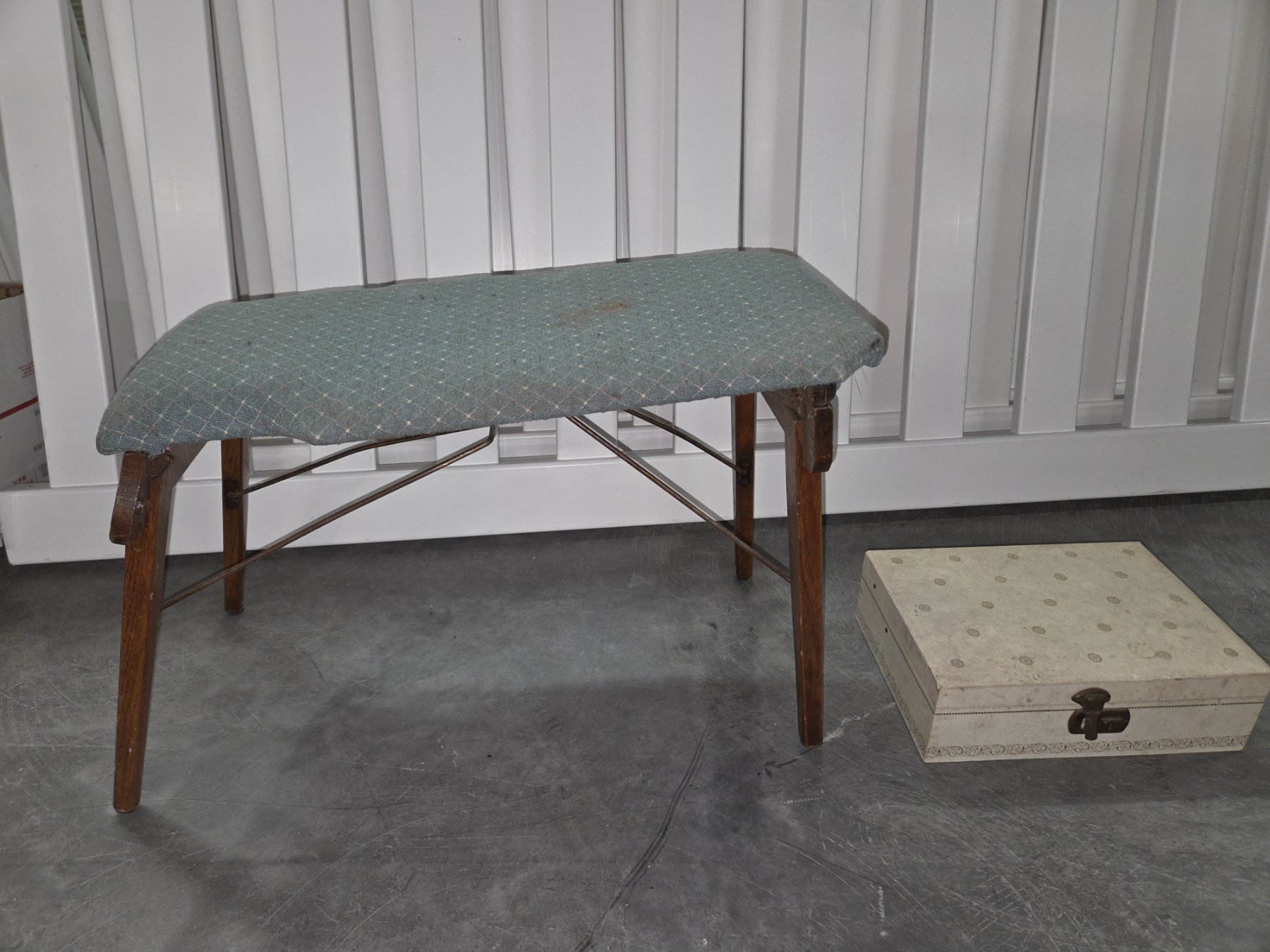 Small Metal Fabric Covered Stool & Old Jewelry Box