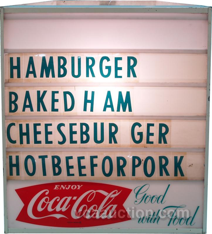 Small Metal & Plastic Light-up Coca Cola "Fishtail" Menu Board, "Enjoy Coca Cola - Good With Food" - 16" x 18" x 5" deep
