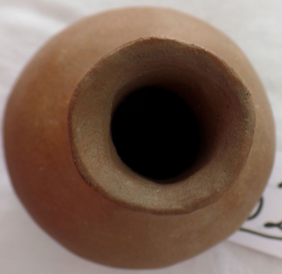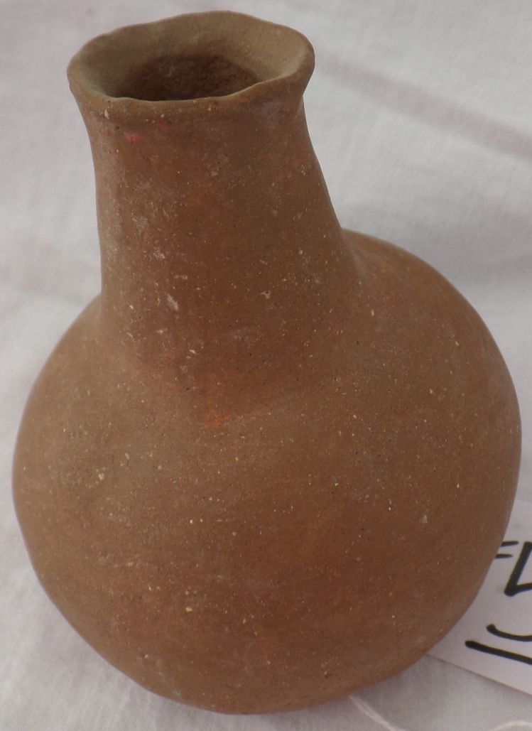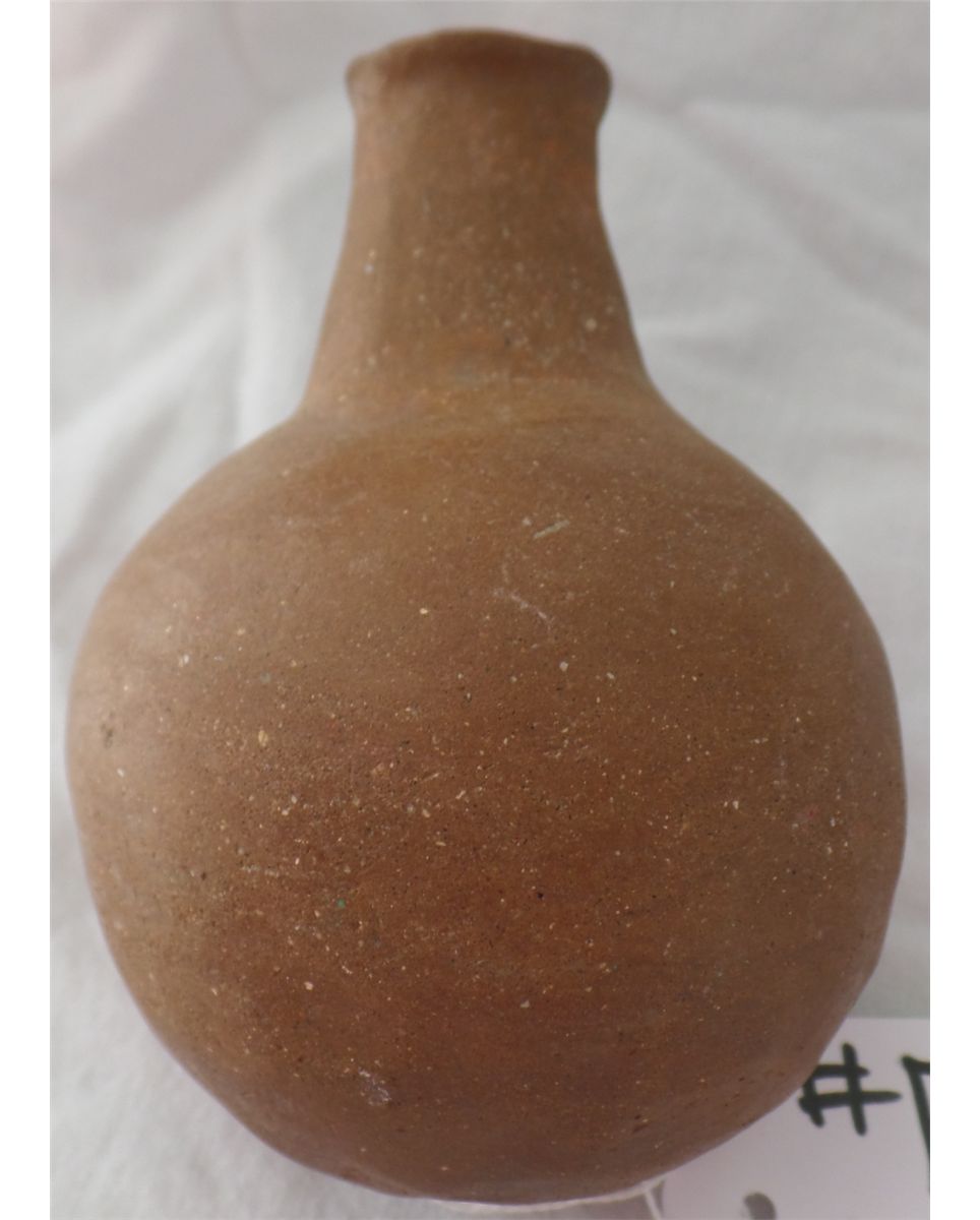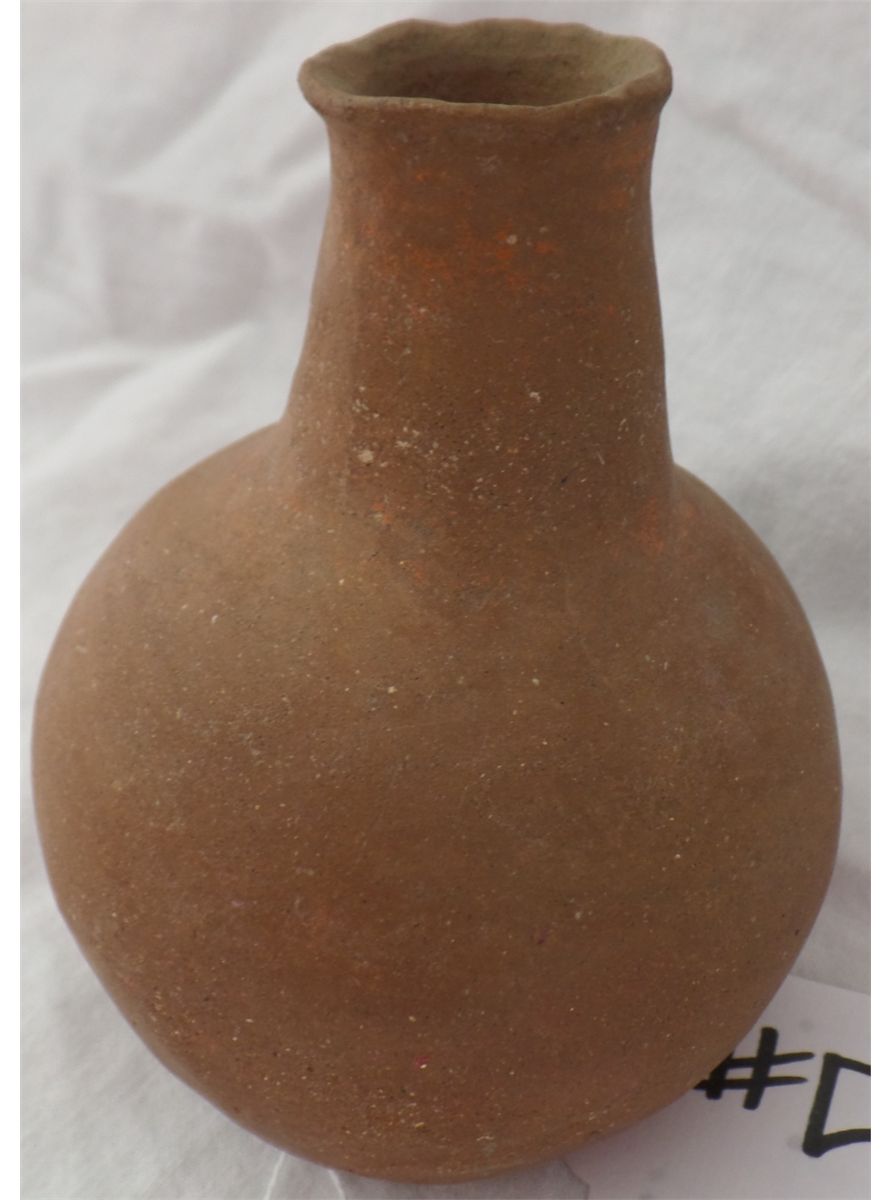 Small Native American Clay Olla. Item is 5" tall with a 1" opening. Found along the U.S.-Mexico border in Southern California. Condition: Very Good. Shipping: $14.