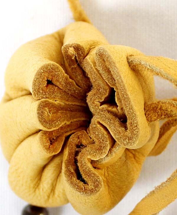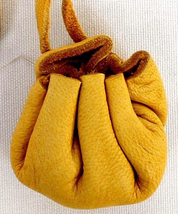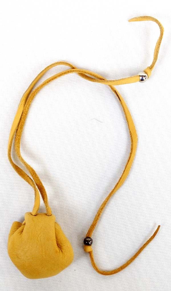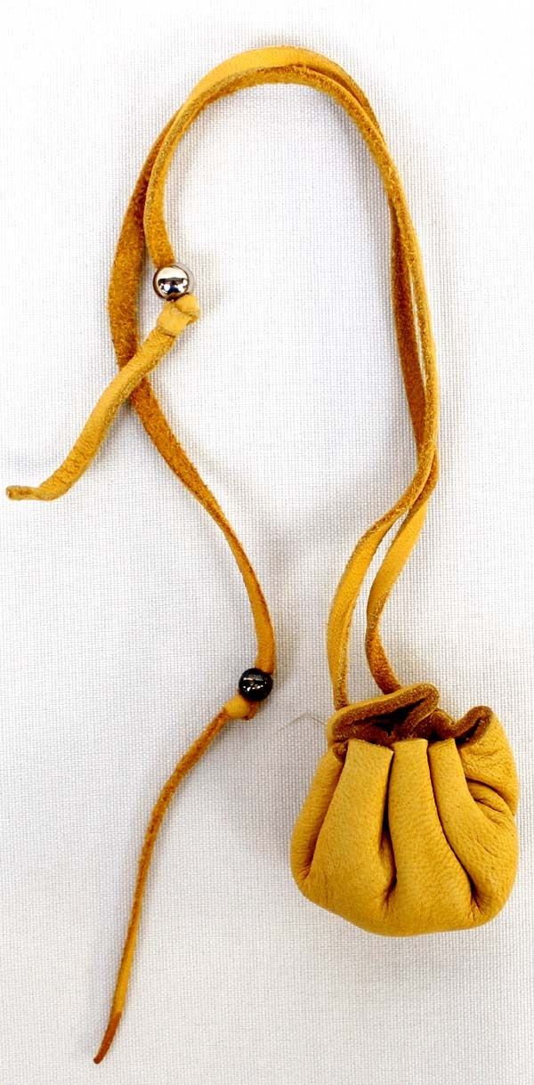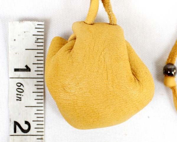 Small Native American Leather Fetish or Medicine Bag, drawstring closure, embellished with pony beads, bag measures 1.75''