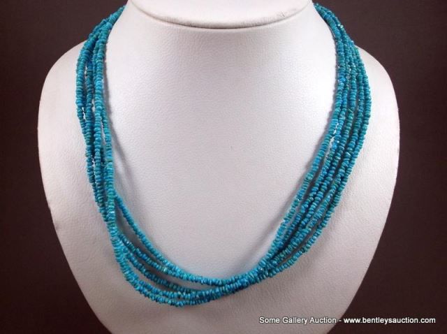 Small Nugget Turquoise 5 Strand Necklace w/ Sterling Silver Clasp Weight: 50.1 Grams Retail: $360.00