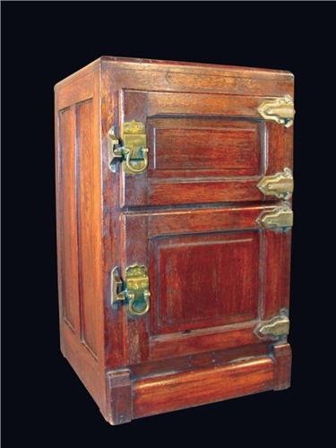 Small Oak Ice Box, original hardware, no name plate. Excellent original condition. 16 X 26 X 16 inches.