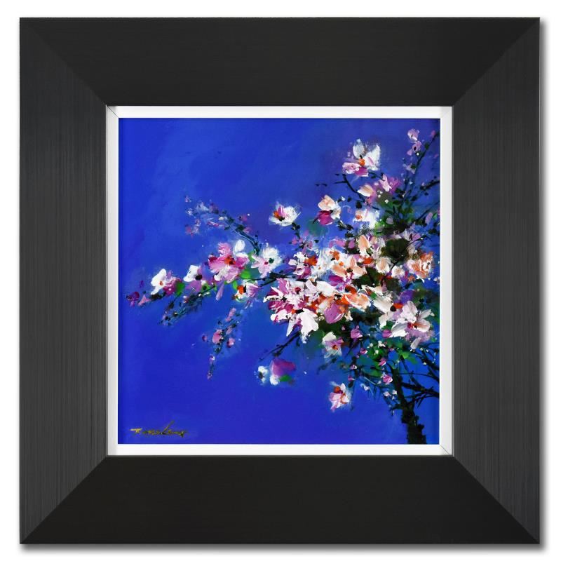 "Small Pink Flower" is an original acrylic painting on canvas board by Thomas Leung, hand signed by the artist. This piece comes custom framed. Includes Letter of Authenticity. Measures approx. 18.5" x 18.5" (frame), 11" x 11" (image).
