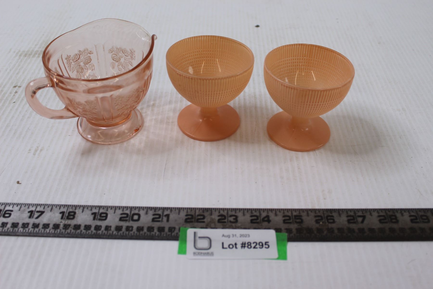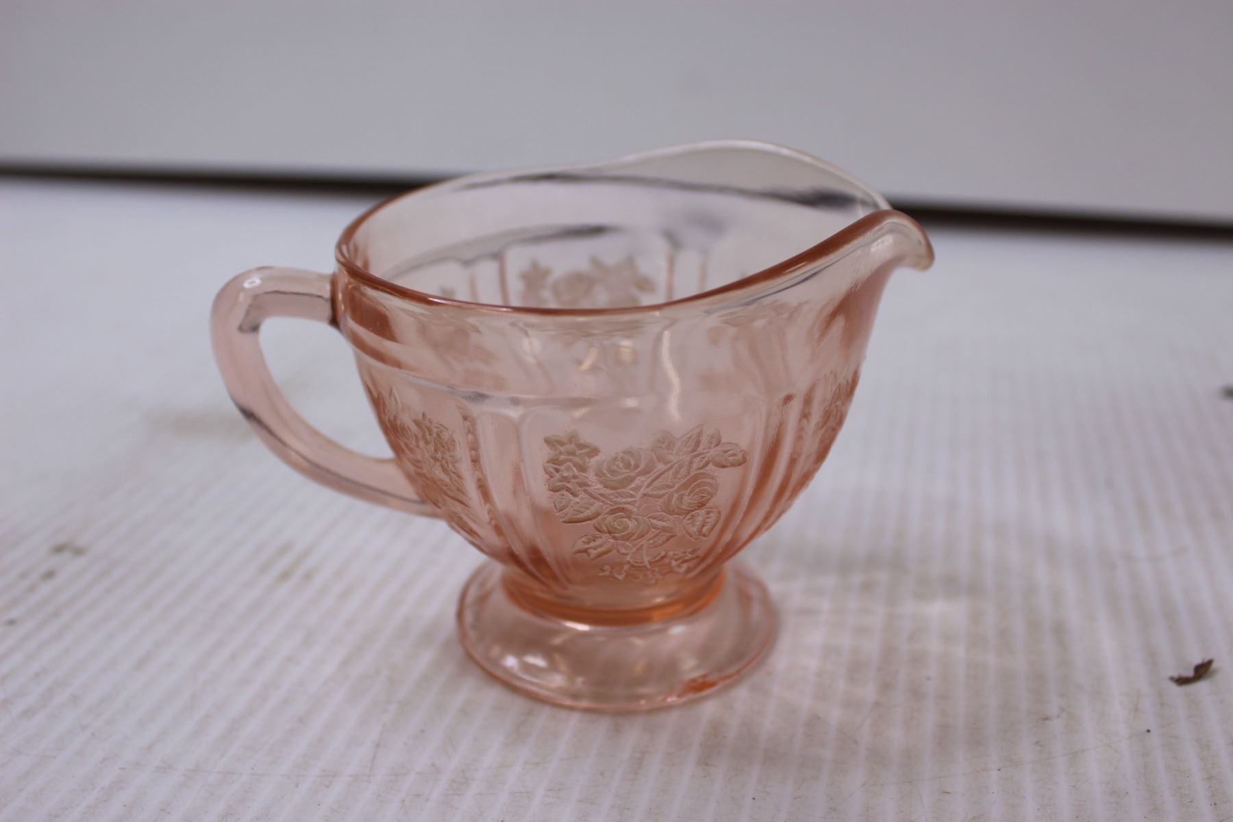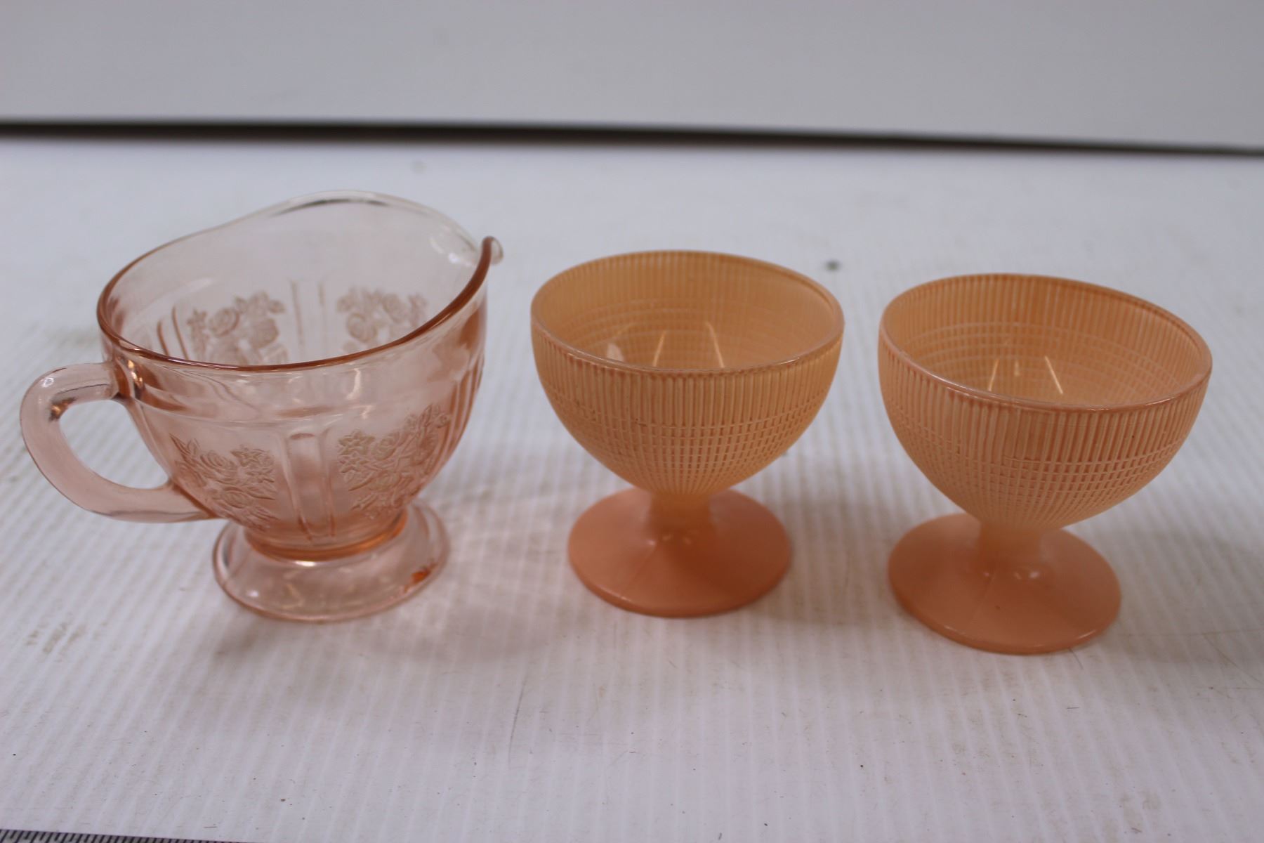 Small Pink Glasses and Pink Depression Glass Creamer