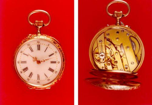 Petite montre en or 14 cts, signée sur le fond SOUVENIR DE 1894 VERONIQUE SIMON, échappement à cylindre, 10 rubis, en parfait état