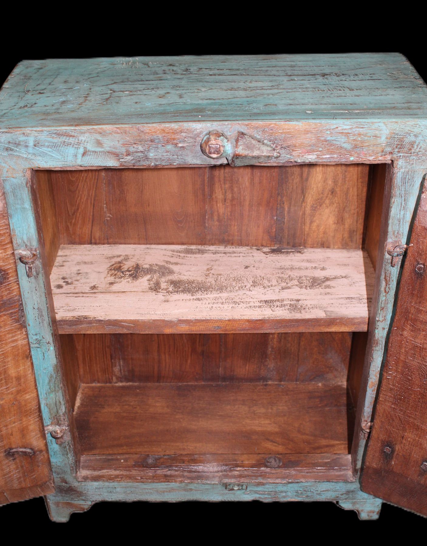 Small Primitive Table Top Cabinet With Shelf- 25.5" X 20.5" X 11"- Right Look