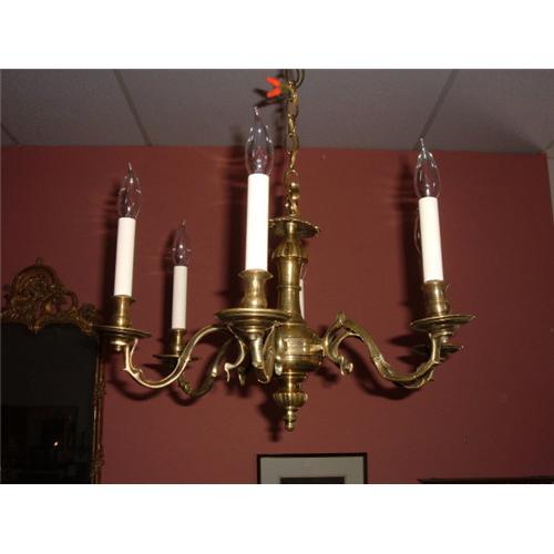 <tr><td>Title:Small Queen Anne 6 branch brass chandelier</td></tr>