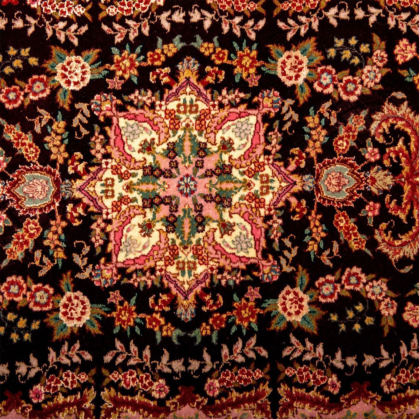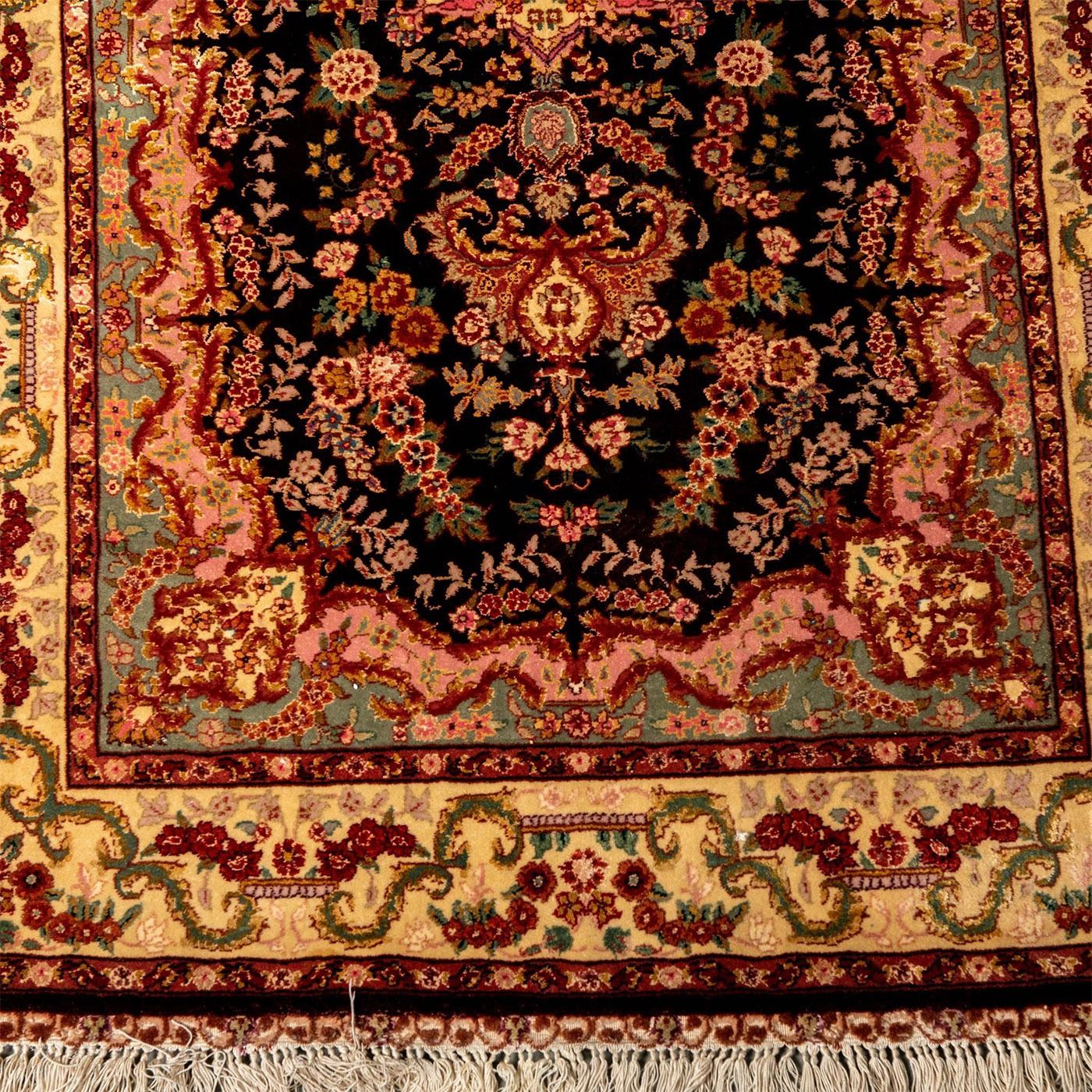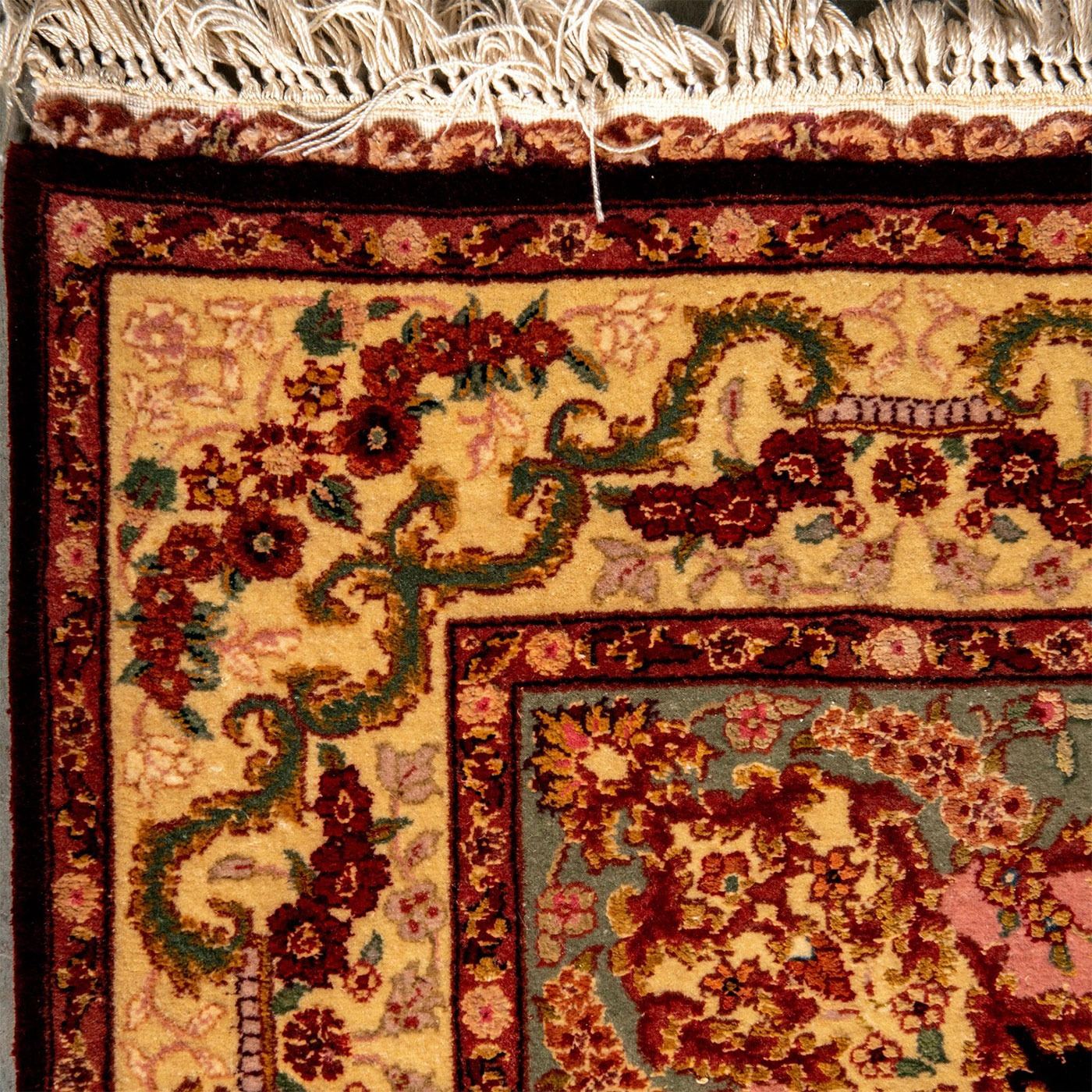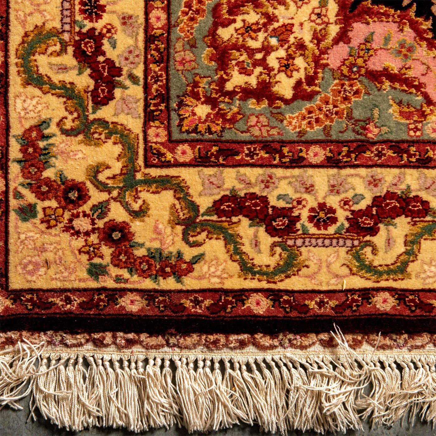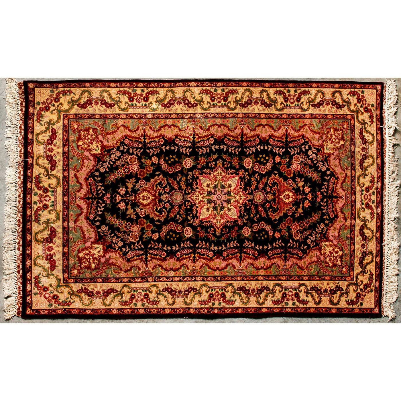 Rectangular rug with luscious red coloration. All over floral designs. Dense low pile.