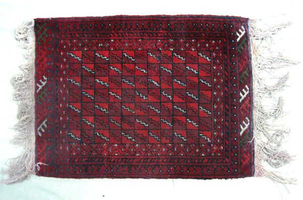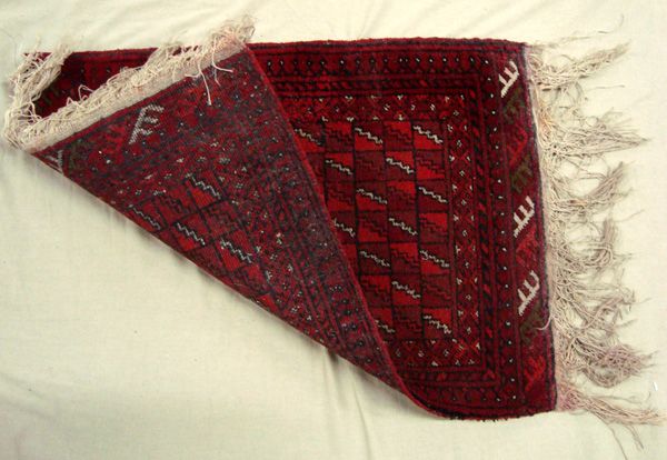 Small Red Black & White Persian Rug, measures approx. 19 x 26.5'', does not include fringe.