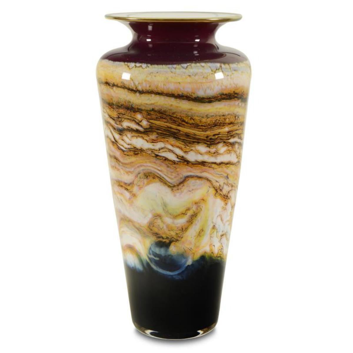 This hand-blown "Small Ruby Traditional Urn" combines sand-etched exteriors with an elegant lip accent and is hand signed by GartnerBlade Glass. Measures approx. Measures approx. 6" (diameter) x 12" (height). Reference #: 245497