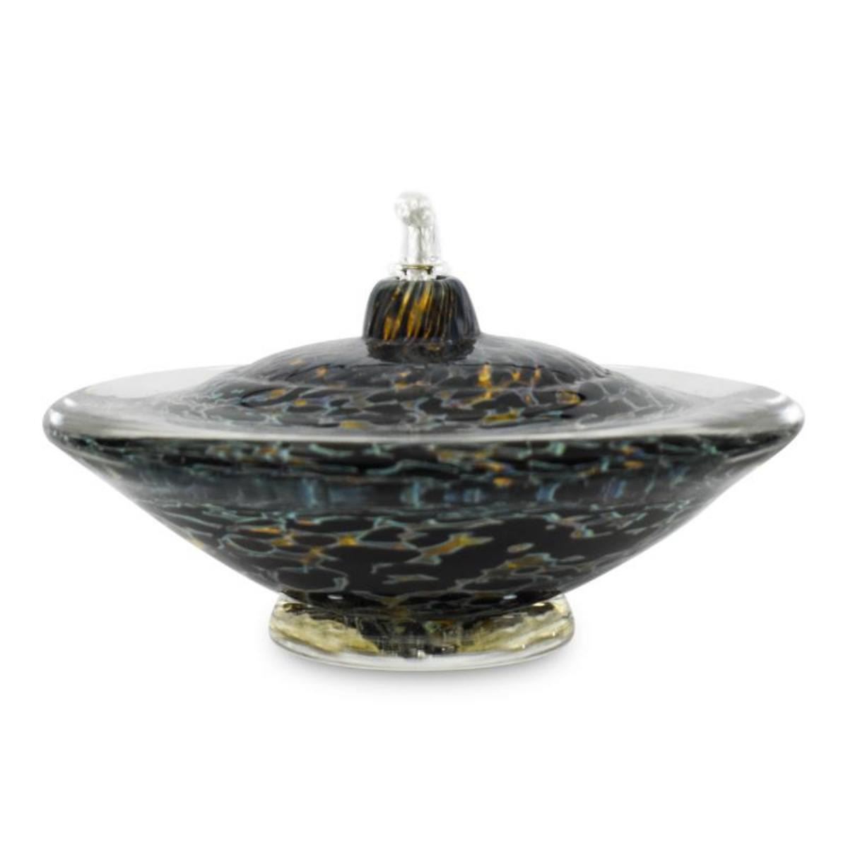 Small Saturn Oil Lamp by GartnerBlade Glass. This hand-blown "Small Saturn Oil Light" features a fiberglass wick to get you started, and when lit, the lamp casts a glowing ring of firelight, evoking the rings of majestic Saturn. This one-of-a-kind oil lamp is by GartnerBlade Glass. Measures approx. 5" (diameter) x 3" (height).