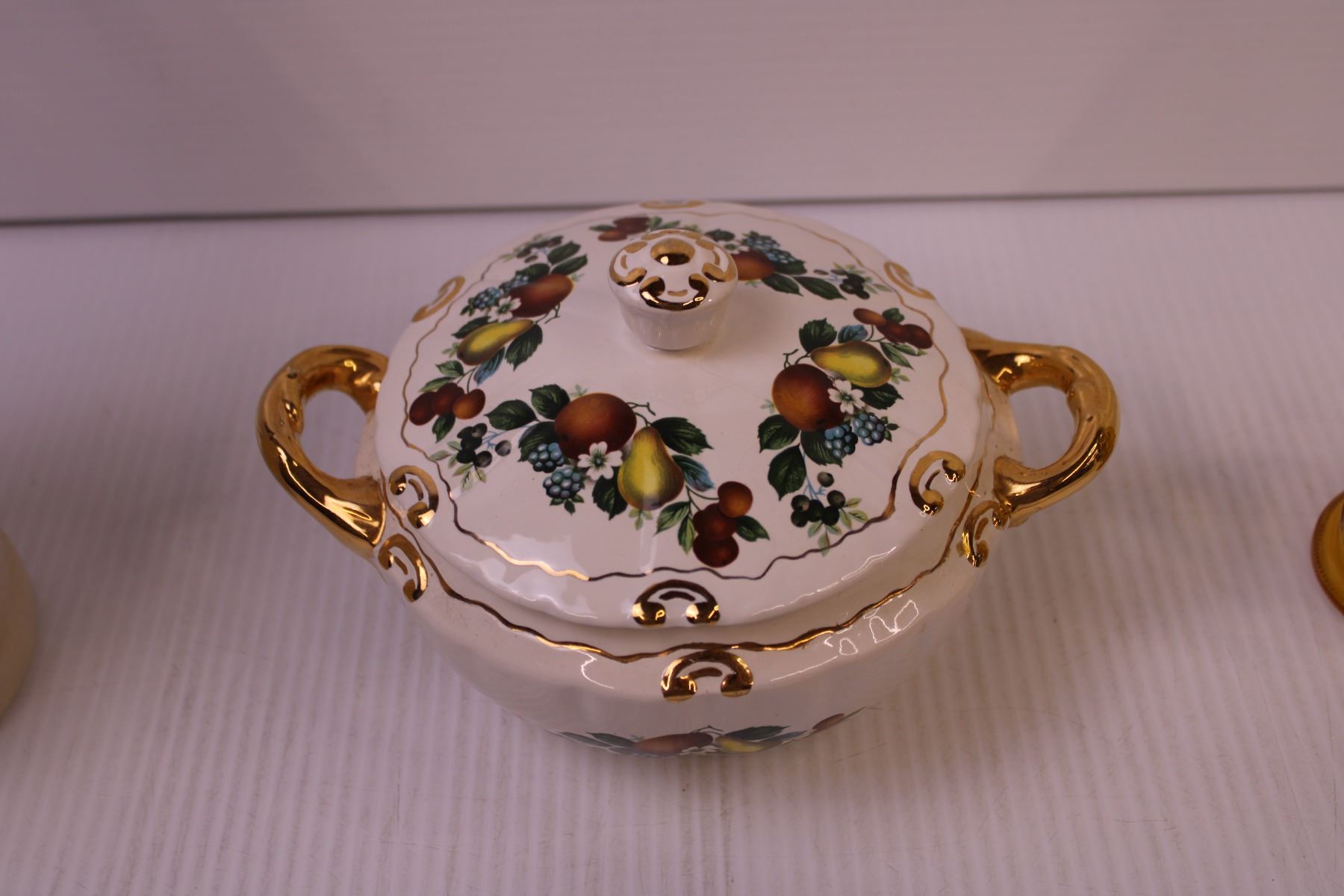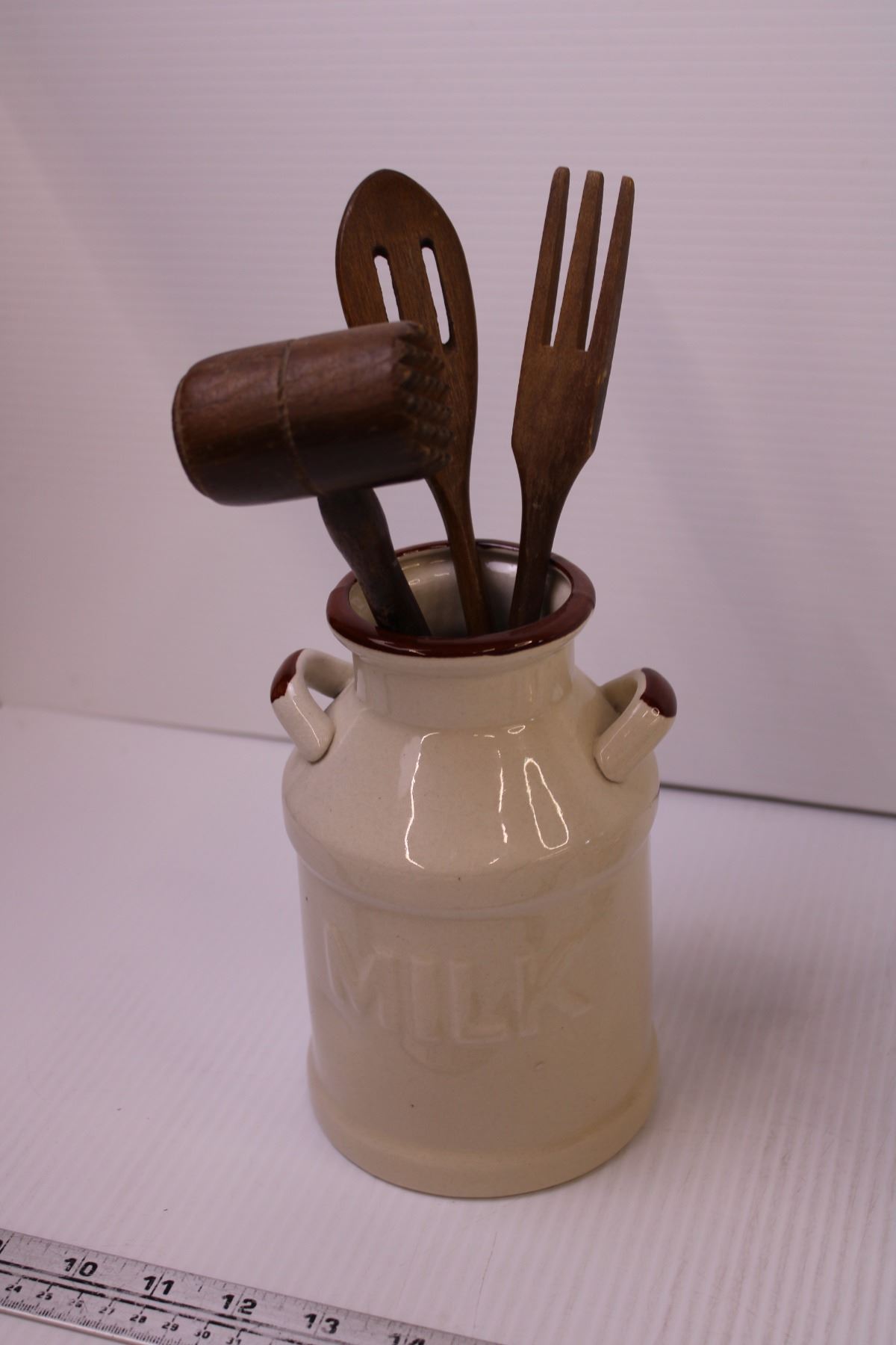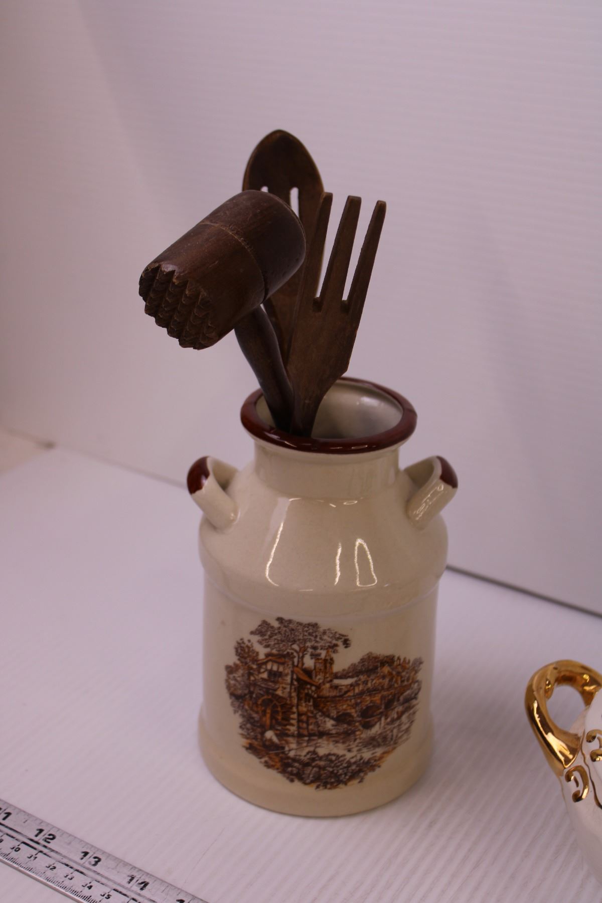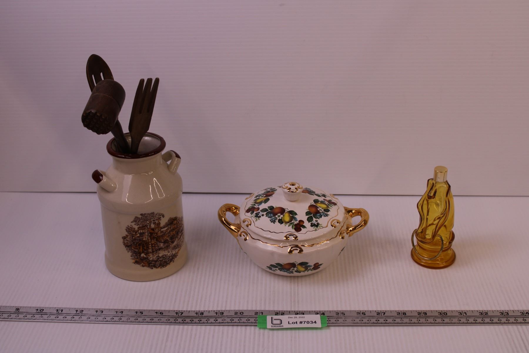 Small Serving Dish w/ Lid Utensil Holder w/ Vintage Utensils + Misc
