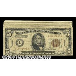 Small Size $5 Potpourri.Included in this group of Fives are a 1934A Hawaii in VG, 15 North Africa $5s ranging from VG to VF, a 1963 Legal Tender in AU, two 1963 Star Legal Tenders in AU, and four 1934A Silver Certificates in XF and AU. 23 notes <BR><BR><B>Important notice:</B> Heritage usually auctions material at the rate of 200-250 lots per hour. On some occasions eBay Live bid software or the Internet may not be able to keep up with the pace of the auction. We recommend placing a realistic absentee bid now as insurance to avoid disappointment. Occasionally the auctioneer may eliminate or reject an eBay Live bid, and the auctioneer may also reopen a lot after the close of the eBay live bidding (usually because we missed an audience bid), and may reject your bid even if it shows you as the winning bidder. By bidding via eBay Live, you agree that Heritage may award the lot to another bidder at its sole discretion under the circumstances described above or any other reasonable circumstances. Since eBay bids are not shown to us until we open the lot on the floor, we treat those bids just like floor bids. In most cases the floor responds before the eBay bid is presented to us, due to Internet lag time, so for consistency we have made it a policy that floor bids are always considered first over tie eBay live bids. Also please note that all Heritage lots purchased through eBay Live carry a 20% Buyer's Premium. Please make sure you read the Terms and Conditions before you bid. <BR><BR><B>IMPORTANT ANNOUNCEMENT ABOUT RESERVES:</B> Heritage now divulges all reserves on its web site 7 days before every auction. If you want to know whether the reserve on this lot has been met, and if not, what the reserve amount is, please visit this lot page on the HeritageCoin.com web site, or email: bid@HeritageGalleries.com