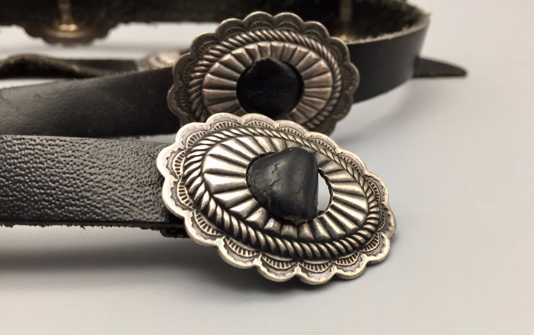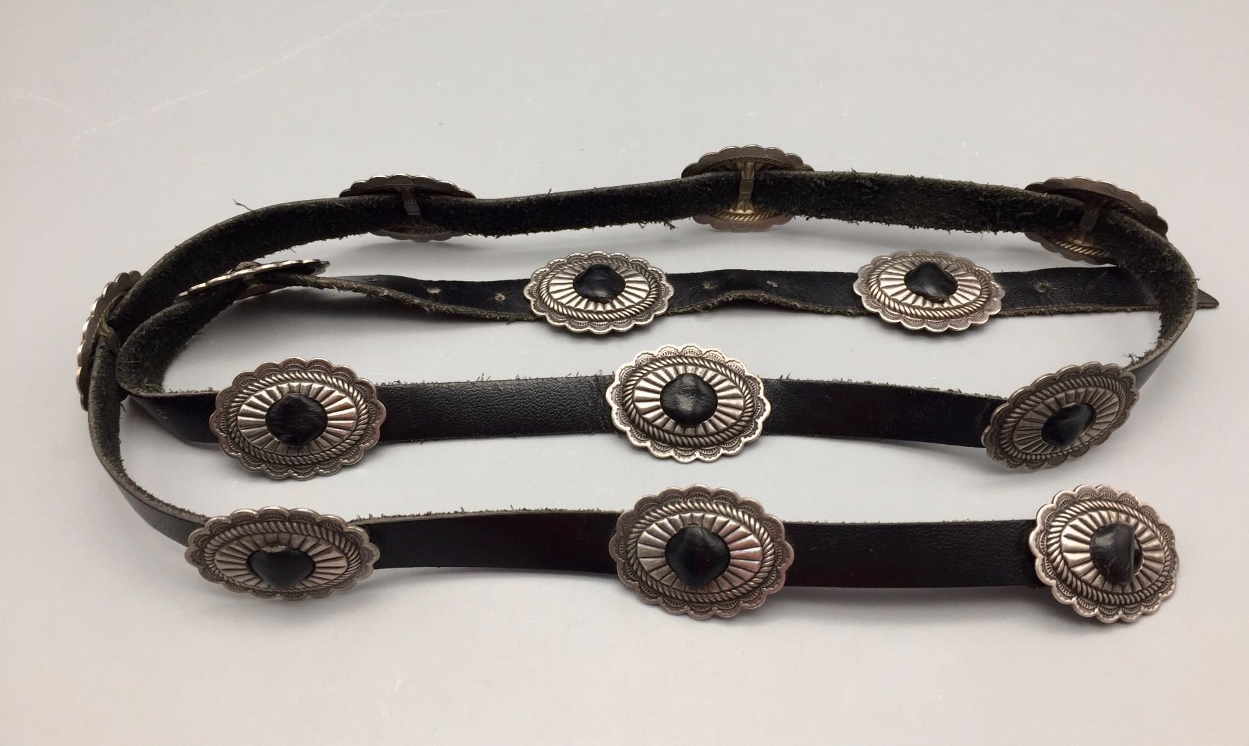 Maker: Unknown, appears to be Navajo. Approx. Age: Vintage. Size: Measures 41 1/2” long and 1” wide. Weighs 91.1 g. Additional Info: Smaller size concho belt or large hat band. Condition: Good for it’s age. Please look closely at the pictures - they are an important part of our description. Shipping: There will be a $5 handling / packaging fee for shipping this lot. The actual cost of postage will be added on top of that.