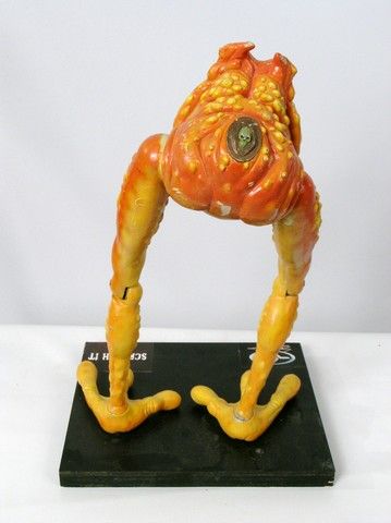 Joe Dante's delightful and truly scary "Small Solders" (1998) was sort of a "Toy Story" on steroids. It has become a much beloved cult classic, and items from this amazing movie have become some of the most sought after. Extreme care was taken to create the "Soldiers", and their accessories, and "custom" weaponry and transportation. After designs were finalized, months were spent constructing the various maquettes and puppets for the film at Stan Winston Studios. Following Chris Swift's designs, special craftsmen sculpted and finished the characters including 'Scratch It' who was a sidekick to Gorgonite 'Punch It.' The character 'Scratch It' was only a few inches tall, so maquettes were sculpted oversize to allow for greater detail, then were scanned and shrunk down to actual size for creating the actual puppets. This is the actual, original, oversized maquette for "Scratch It". It is over 14" high and is in perfect condition, showing off every detail. It is mounted to a wood base by Stan Winston Studios, with their official sticker. Approx. 16" x 10" x 8" With stand).