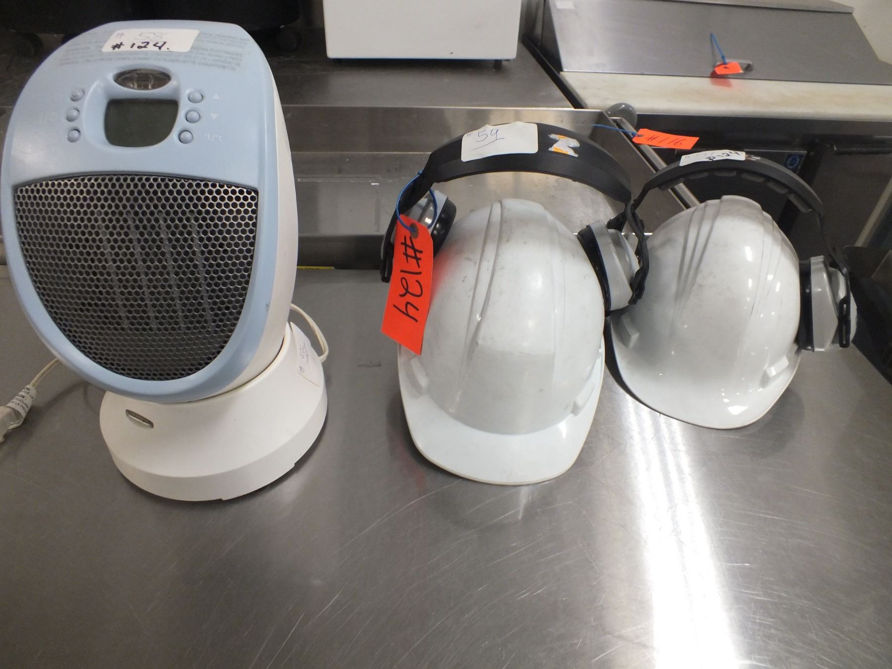 Small Space heater & 2 Hard Hats w/ Muffs...used