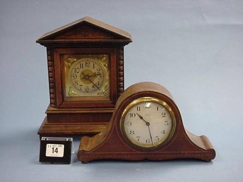 Small Steeple Type Clock And Small 8 Day Napoleon Style Mahogany Cased Clock £25-50...