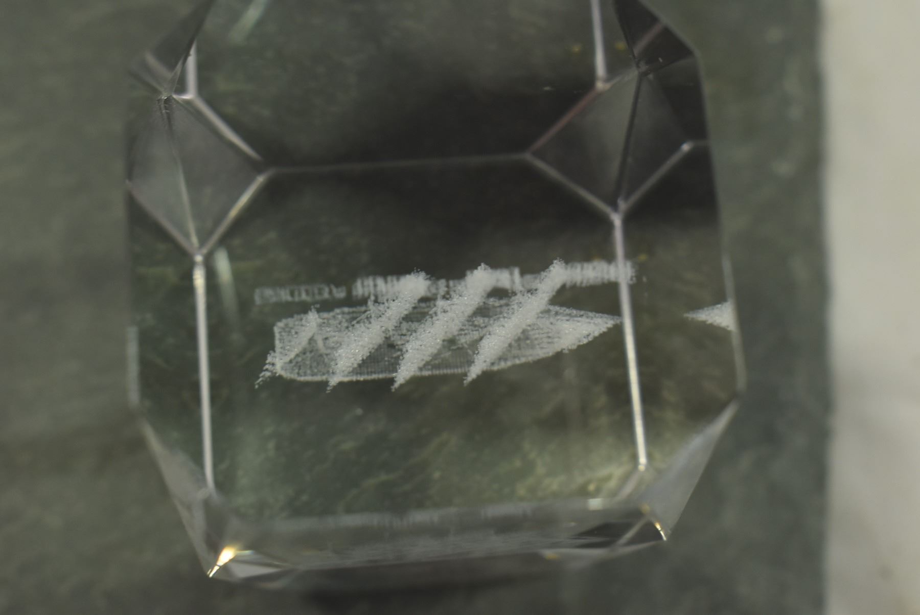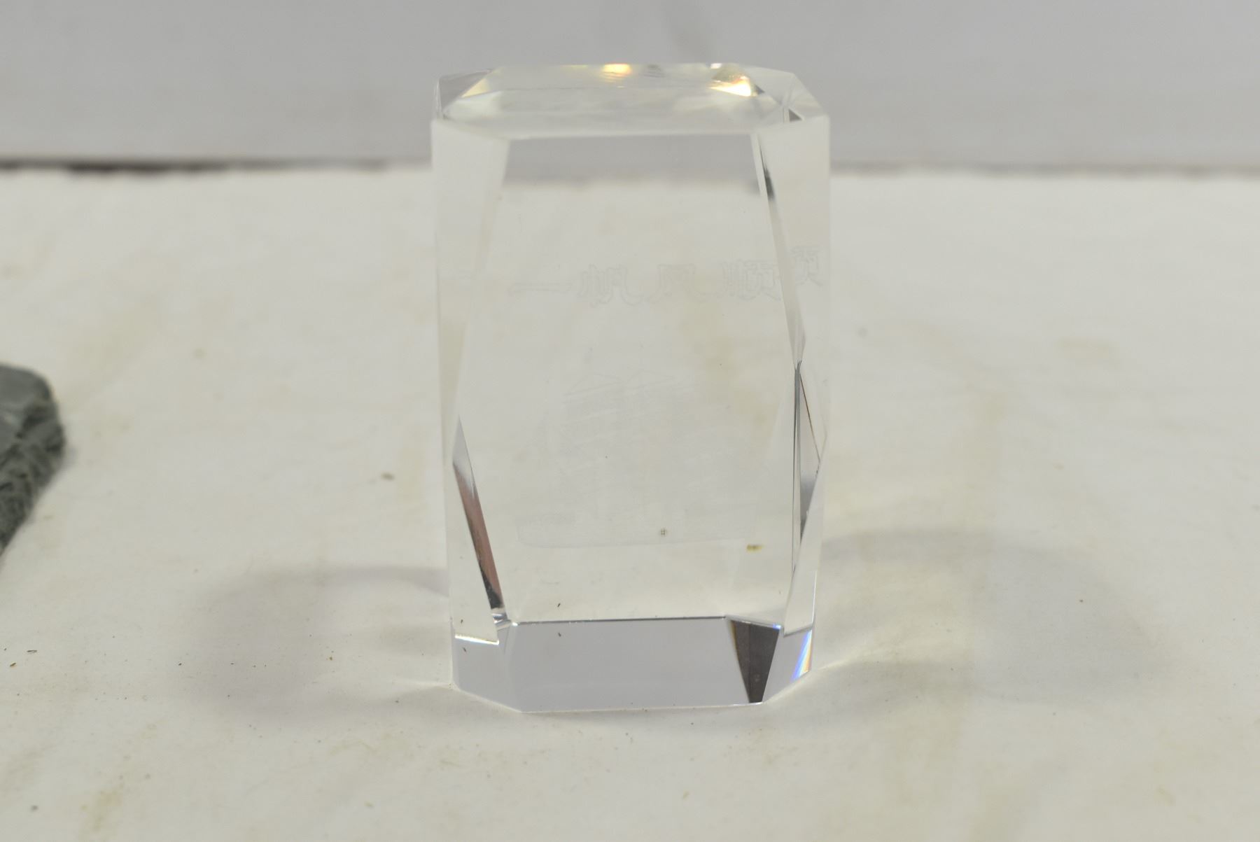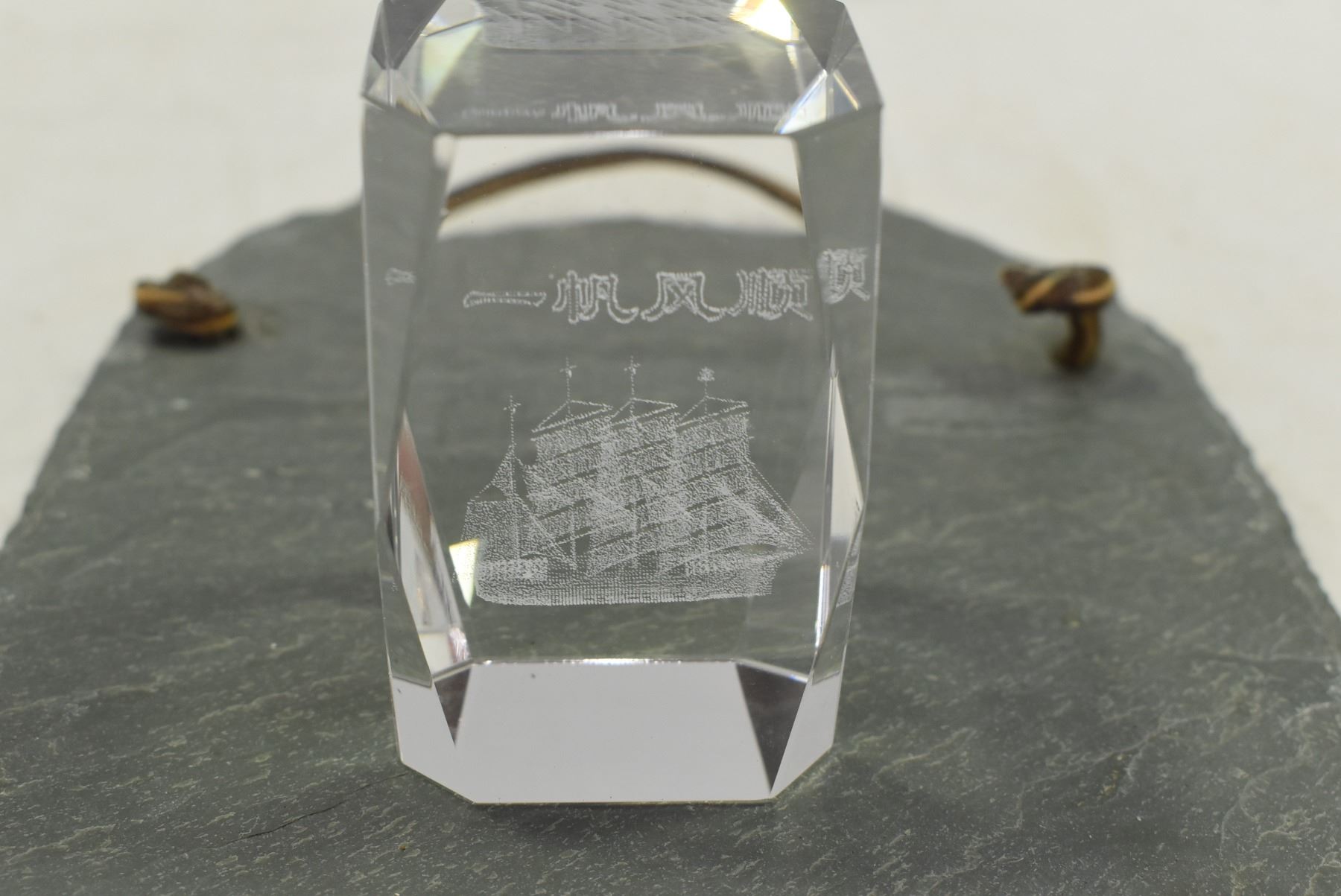 Small Stone Tablet & Glass Block w/ Sailboat Inscribed