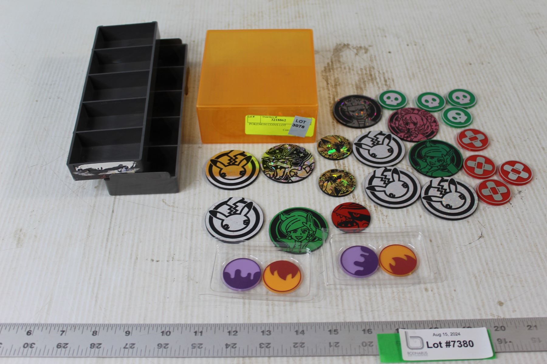 Small Storage Trays, See Through Orange Box, (21) Assorted Pokemon Coins