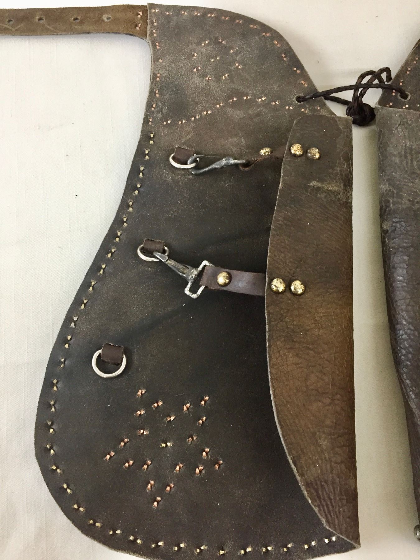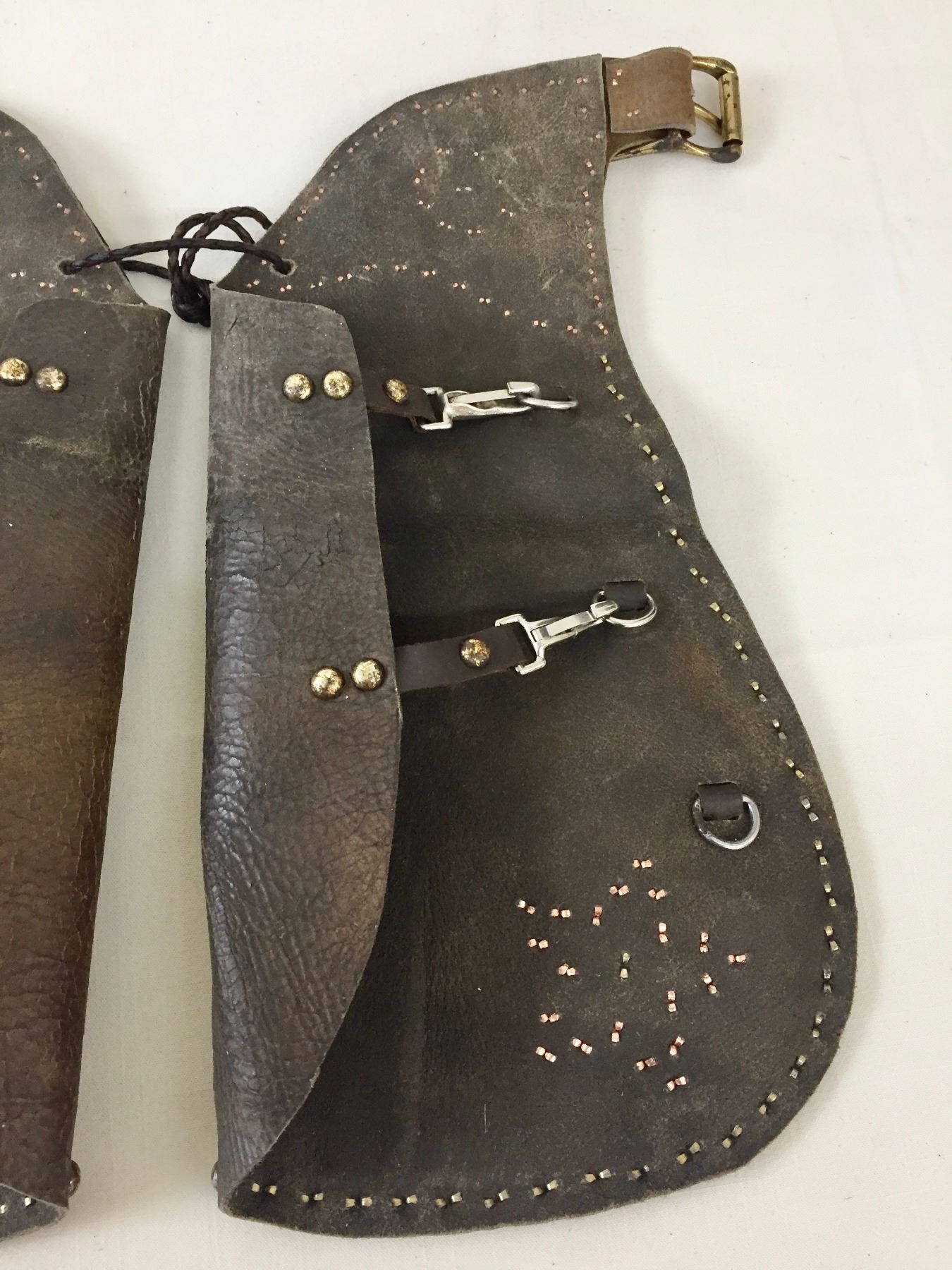 Size: Measures 14-1/2" long. Condition: Pretty good for its age, some wear expected and please note the studded accents do not appear to be original to the piece. Please look closely at the pictures - they are an important part of our description.