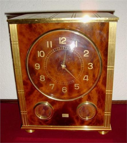 Petite horloge de table en laiton et bakélite signée PONTIFA avec baromètre