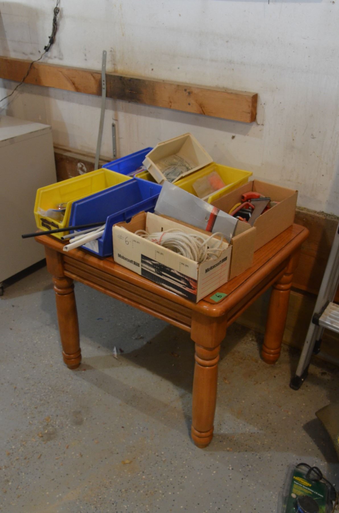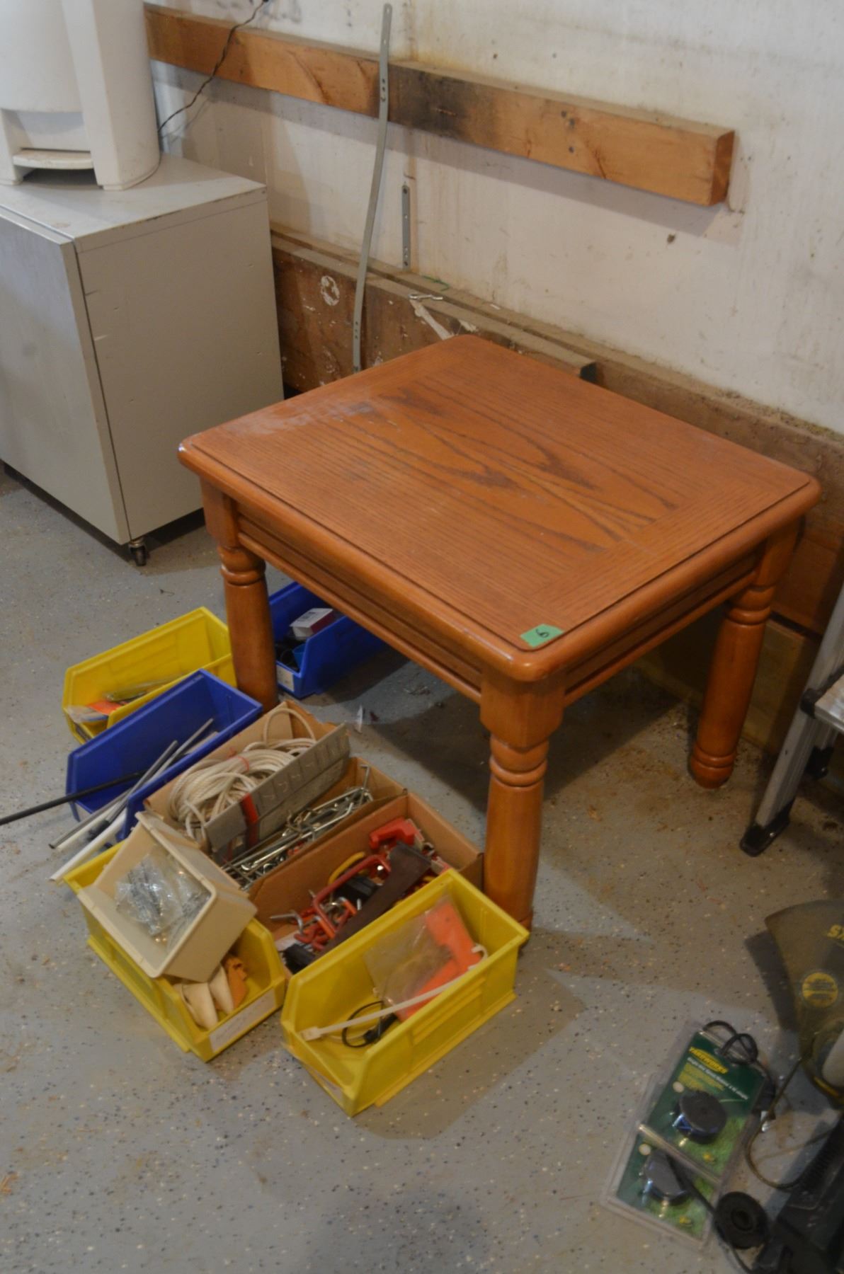 Small Table w/ Contents & Organizer ? Pegboard Hooks, etc.