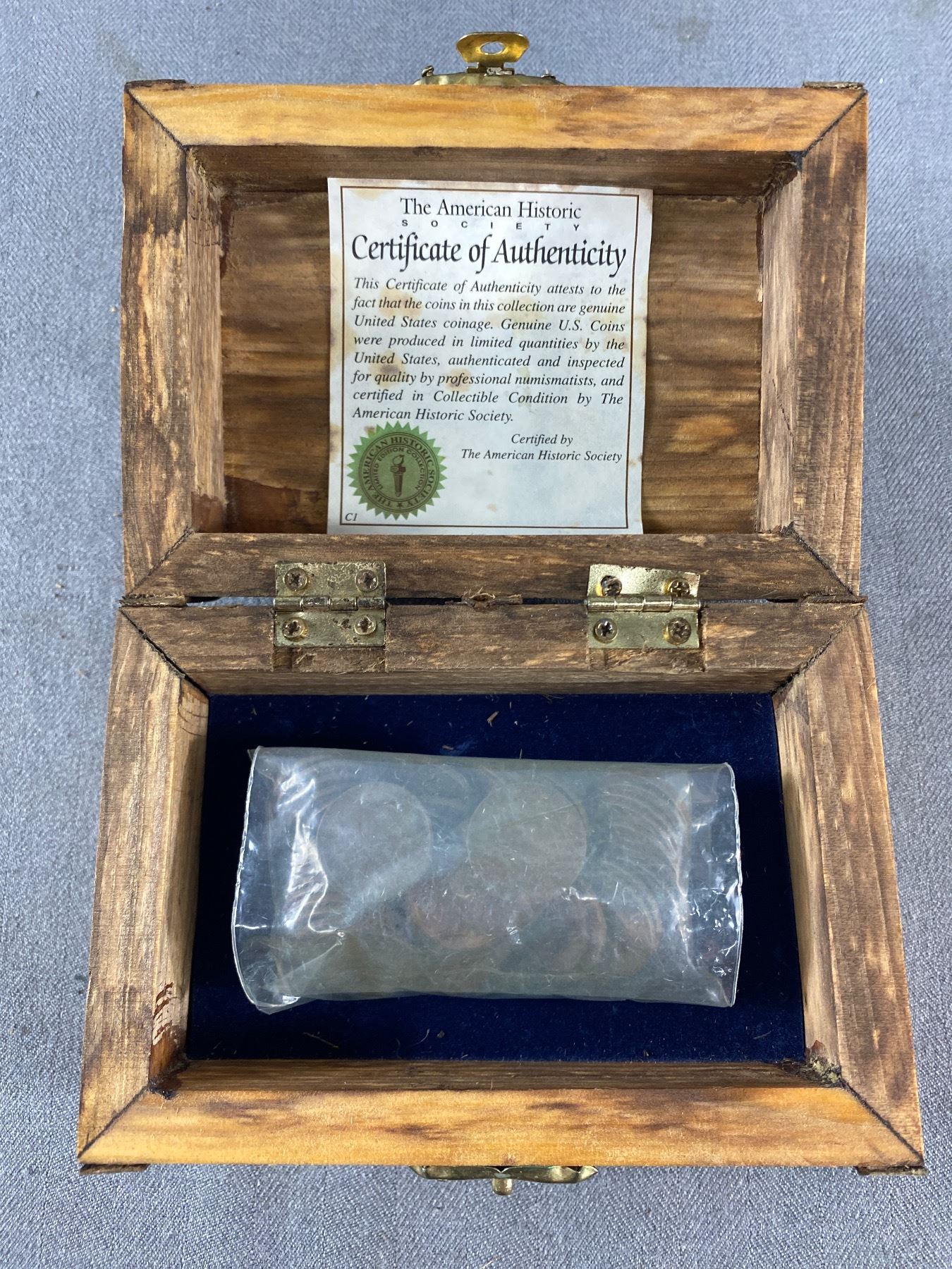 Small Treasure Chest w/ COA American Historic Society, Full of Pennies