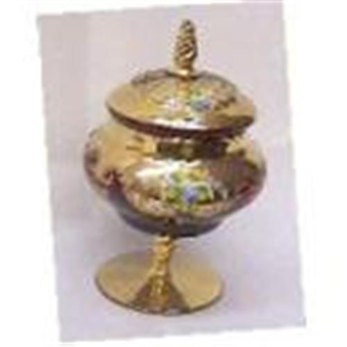 This is A very beautiful Enamel Paint of flowers & Gold small Compote from Italy in perfect condition and very nice deep red color. 1940's