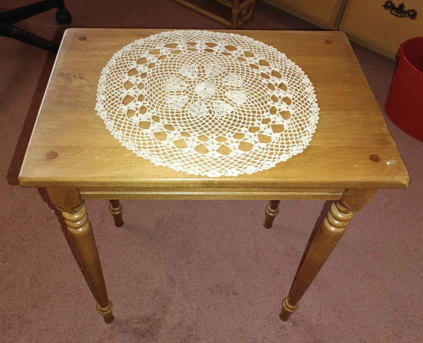 Small Vilas Walnut Wood Side Table 23" x 17"x 16"tall & Bamboo Bathroom Shelf 17" x 21"tall